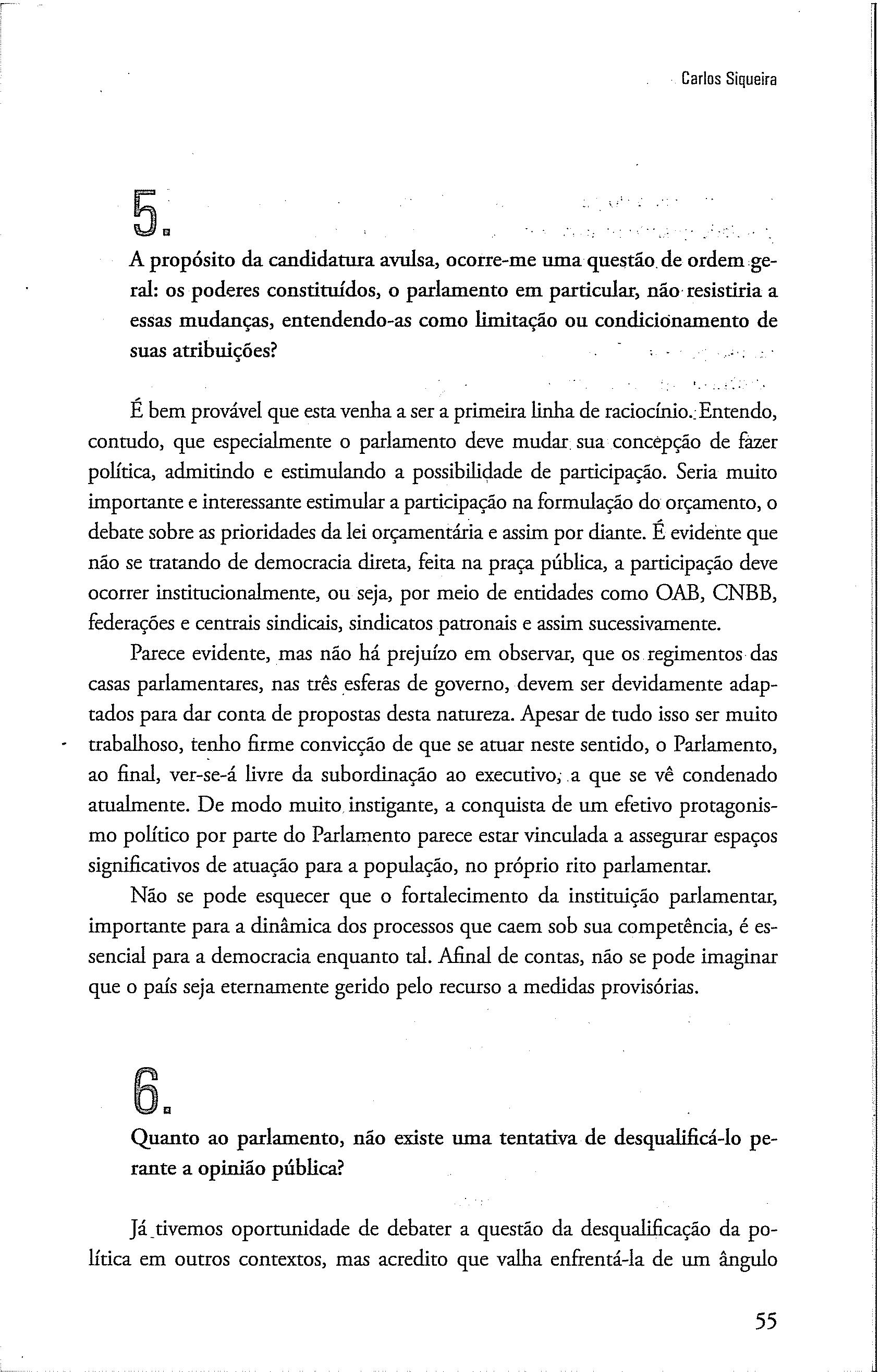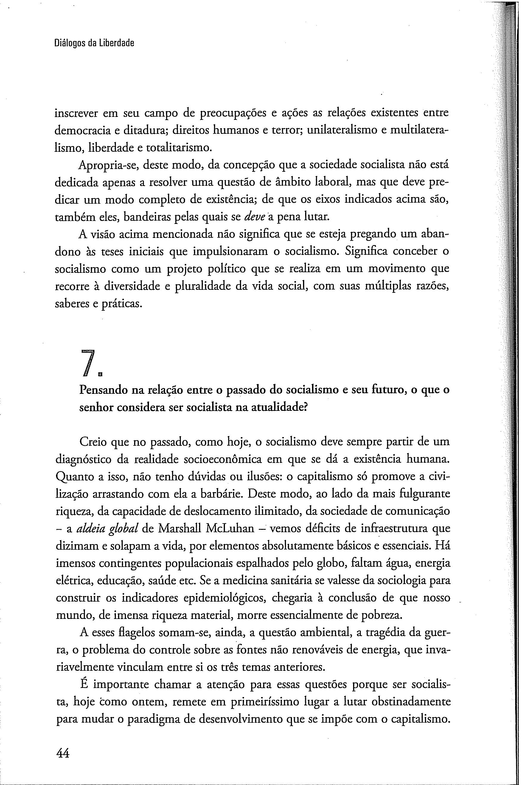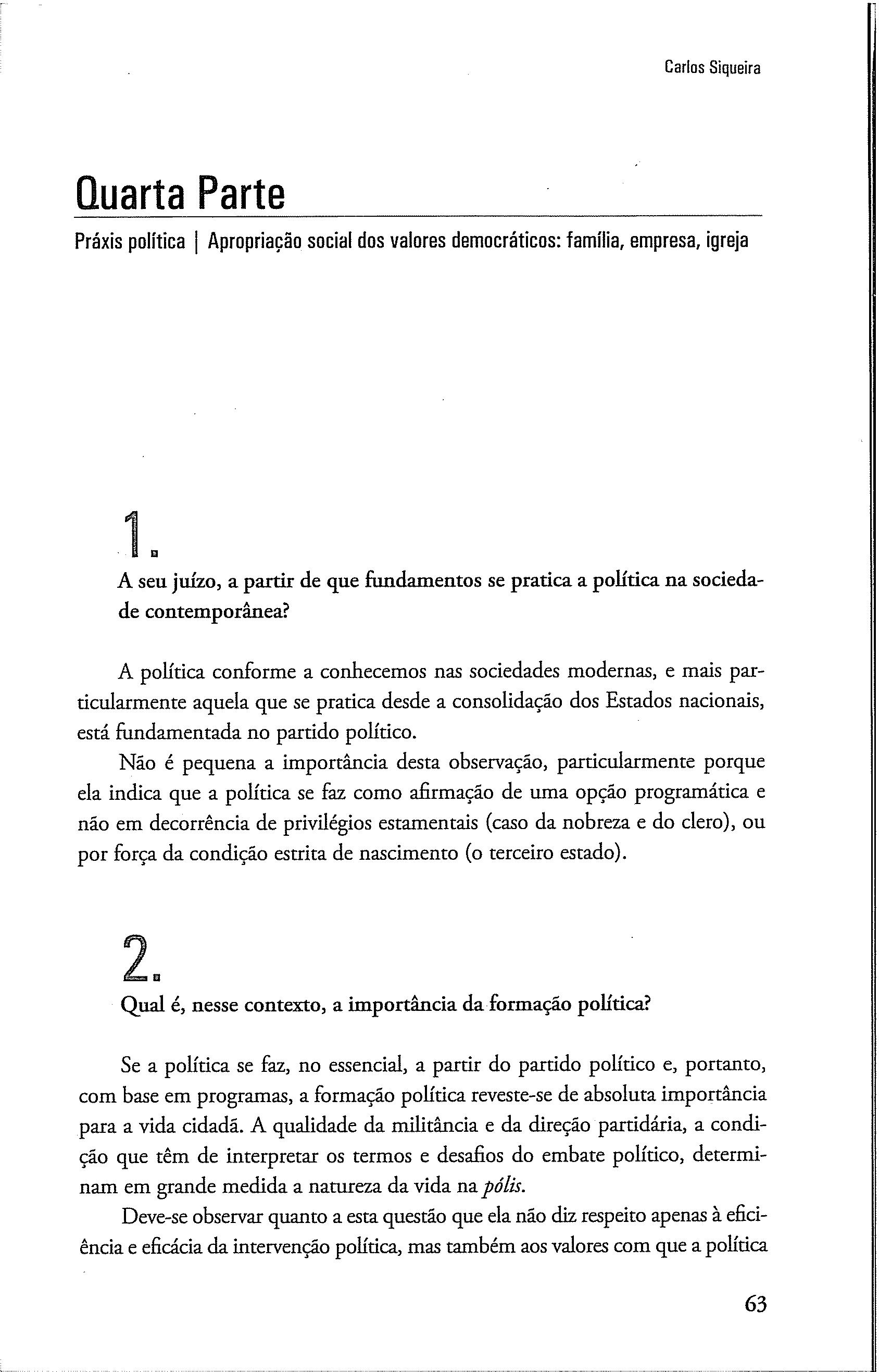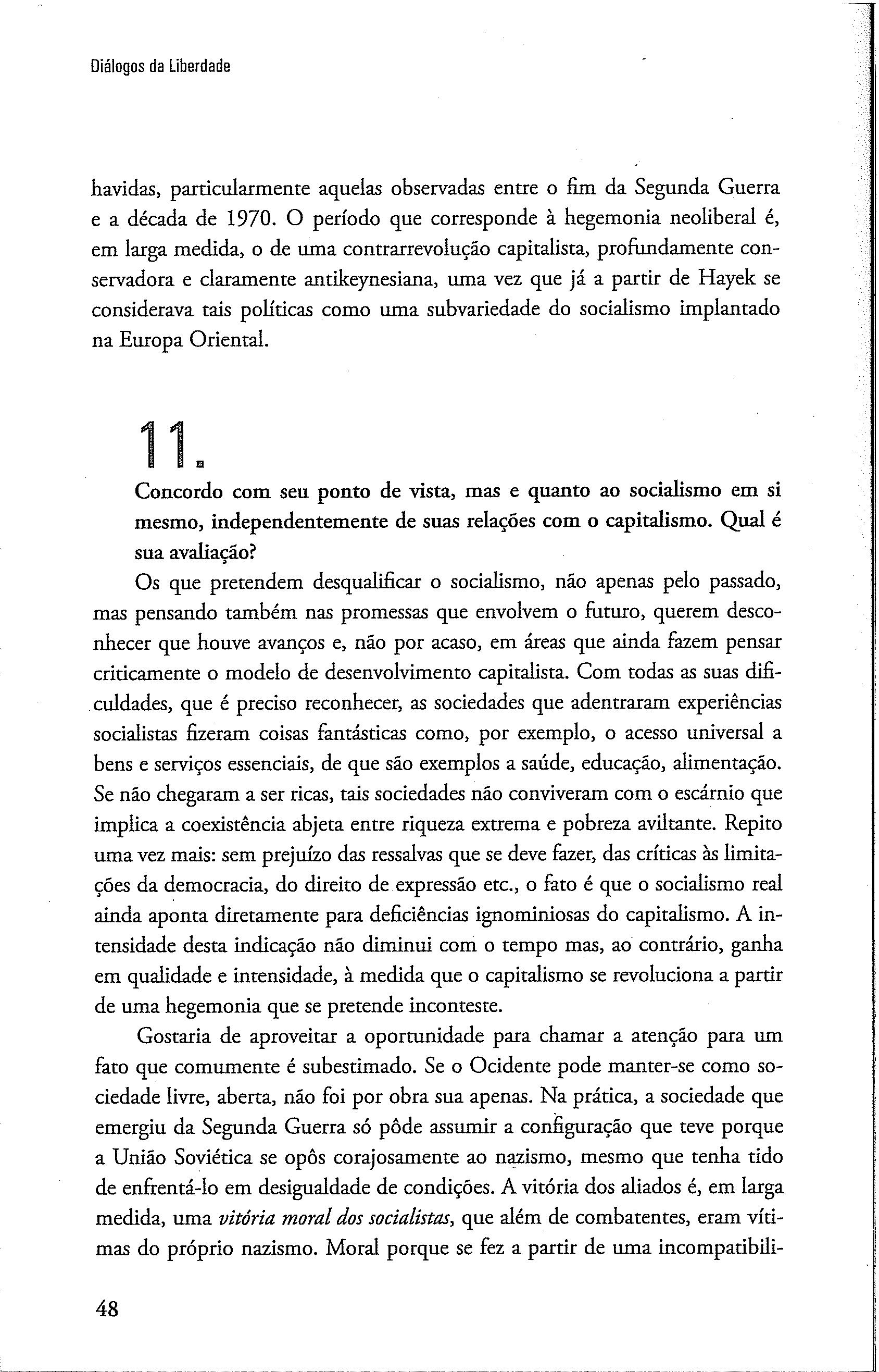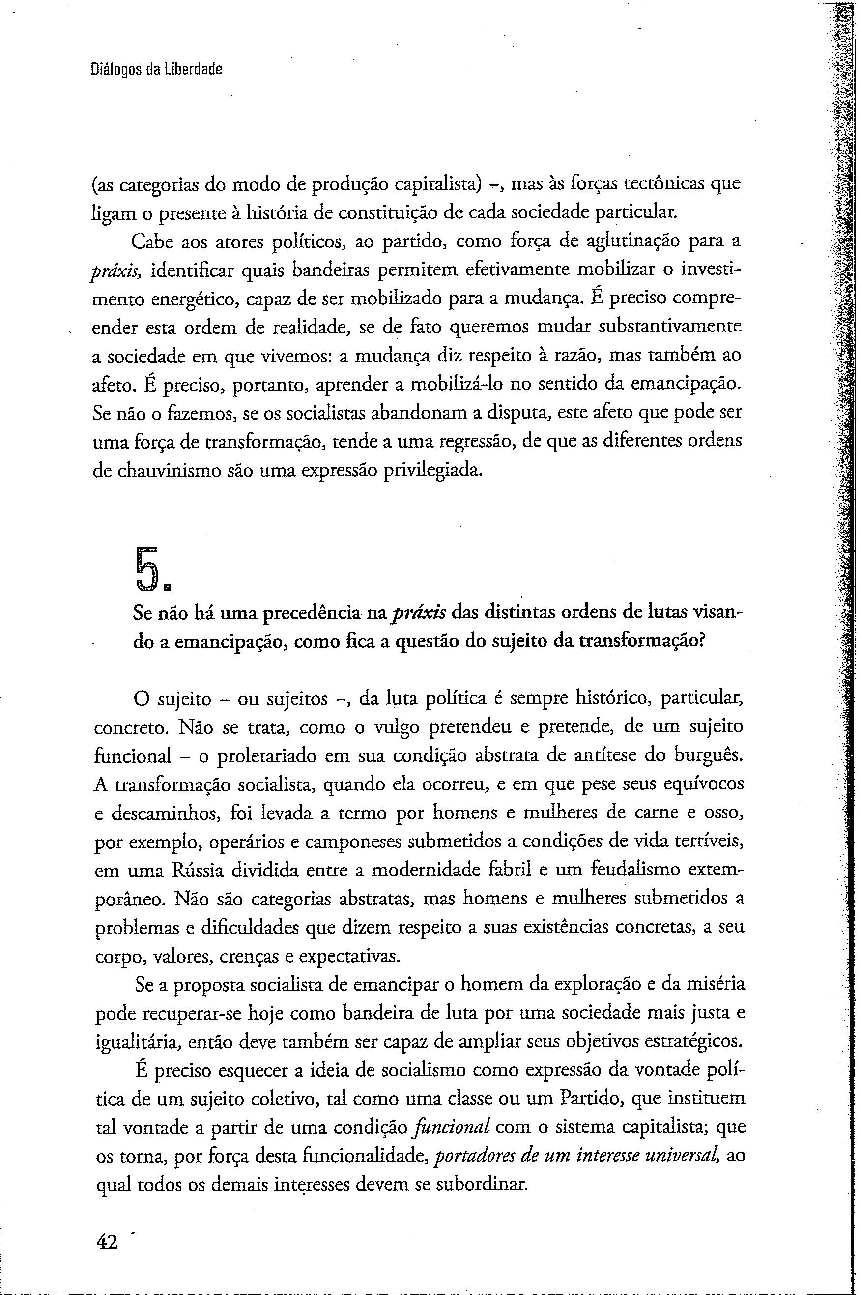 Publicação de 2009 que consiste em uma entrevista com Carlos Siqueira acerca de temas ligados ao socialismo, como: a diferença entre a concepção socialista e a liberal sobre a Liberdade; a necessidade de uma reforma política; características do neoliberalismo; qual o papel do PSB atualmente, entre outros.