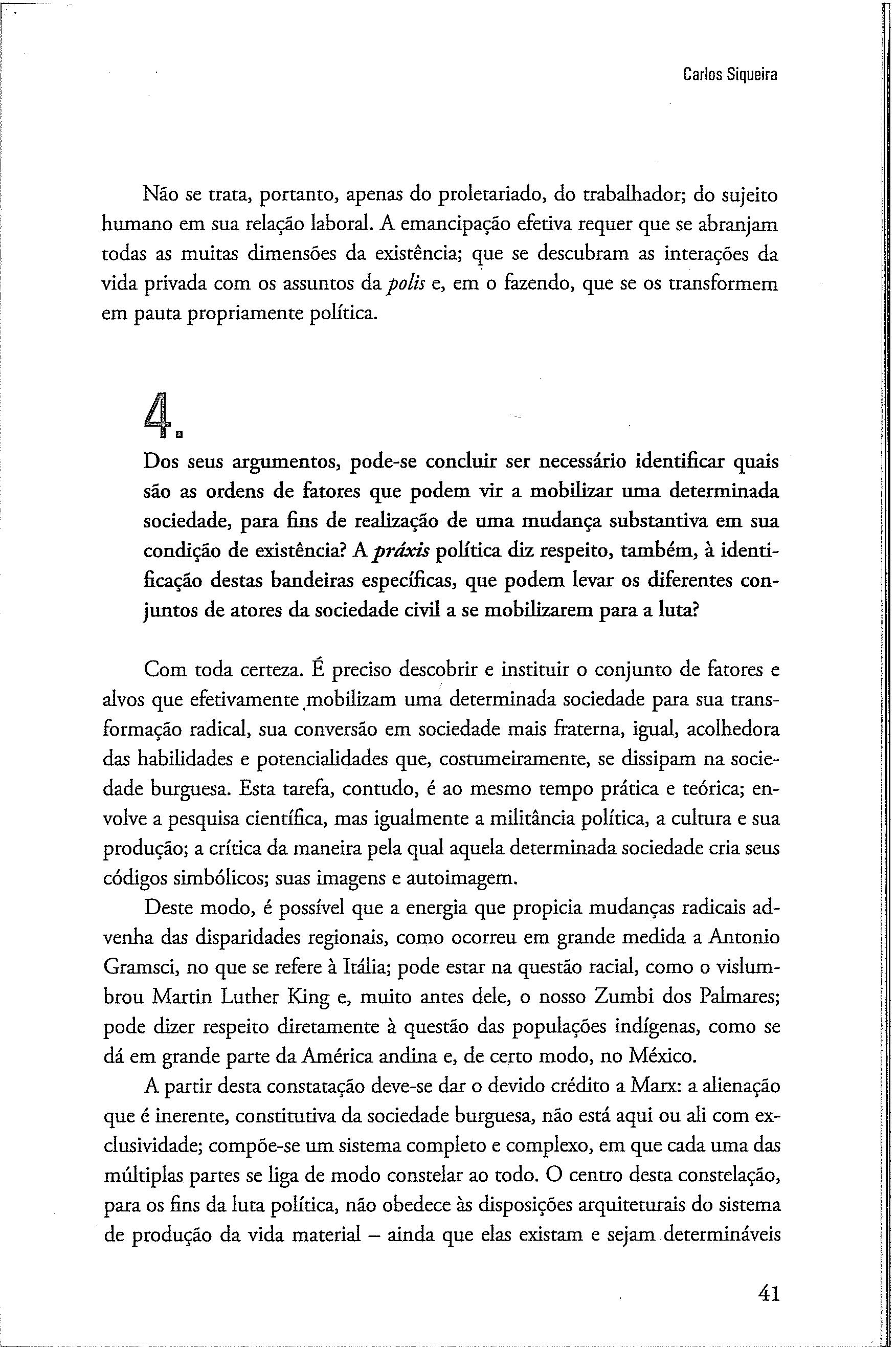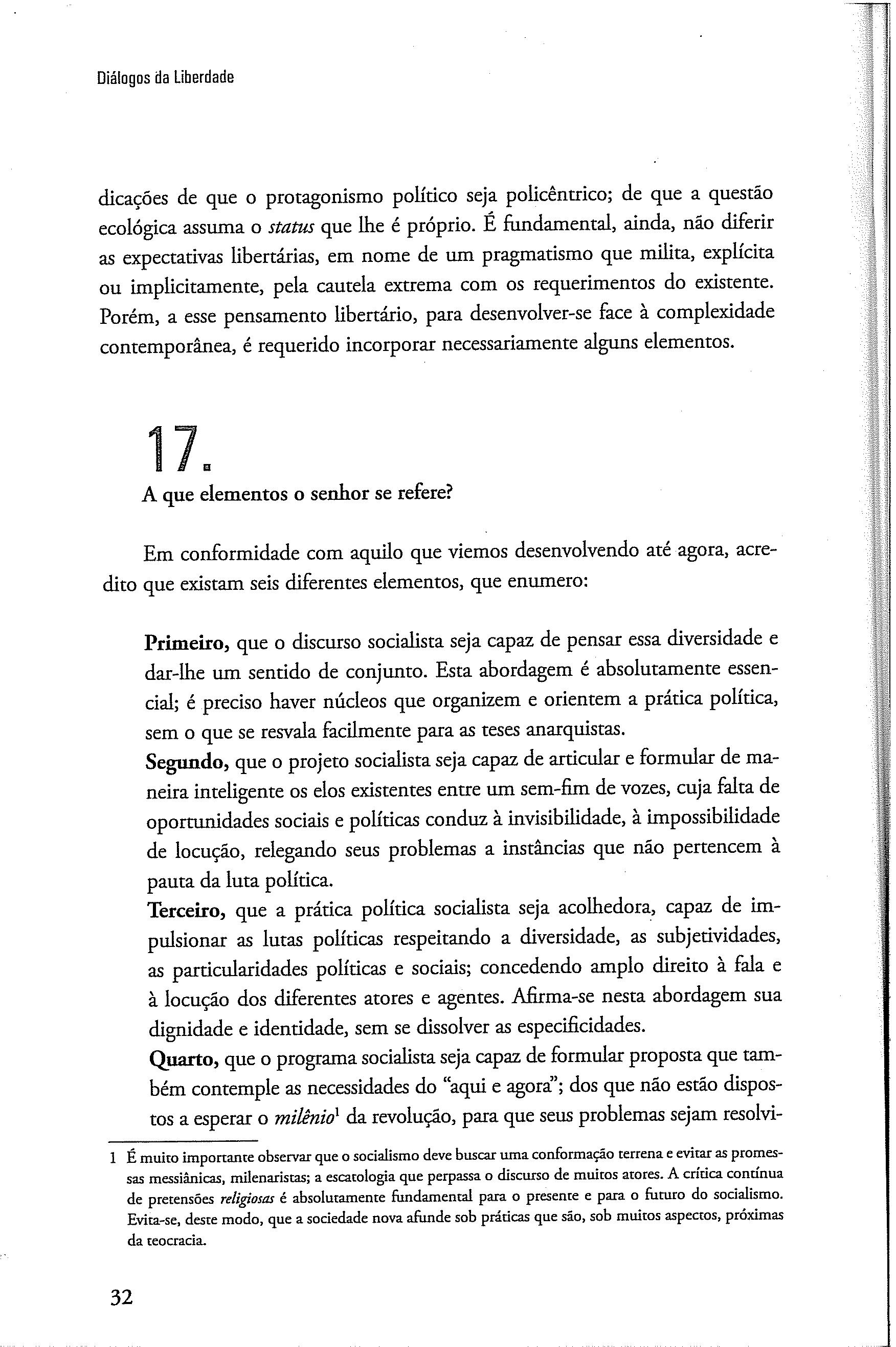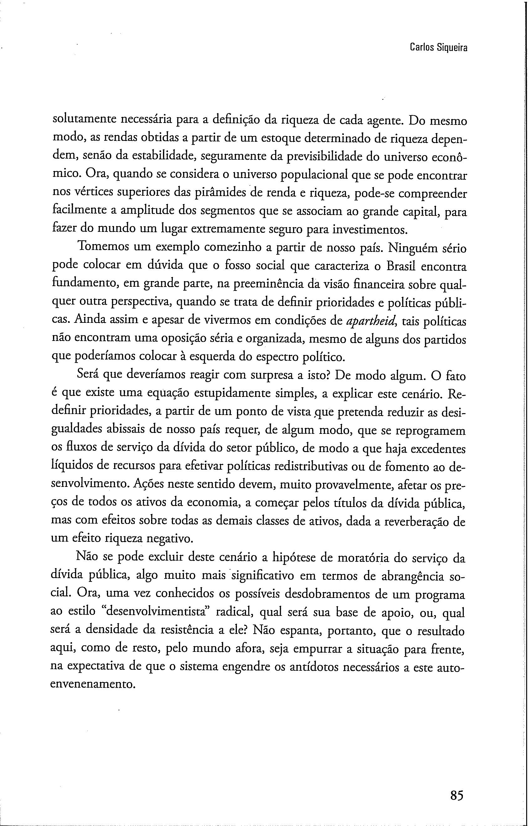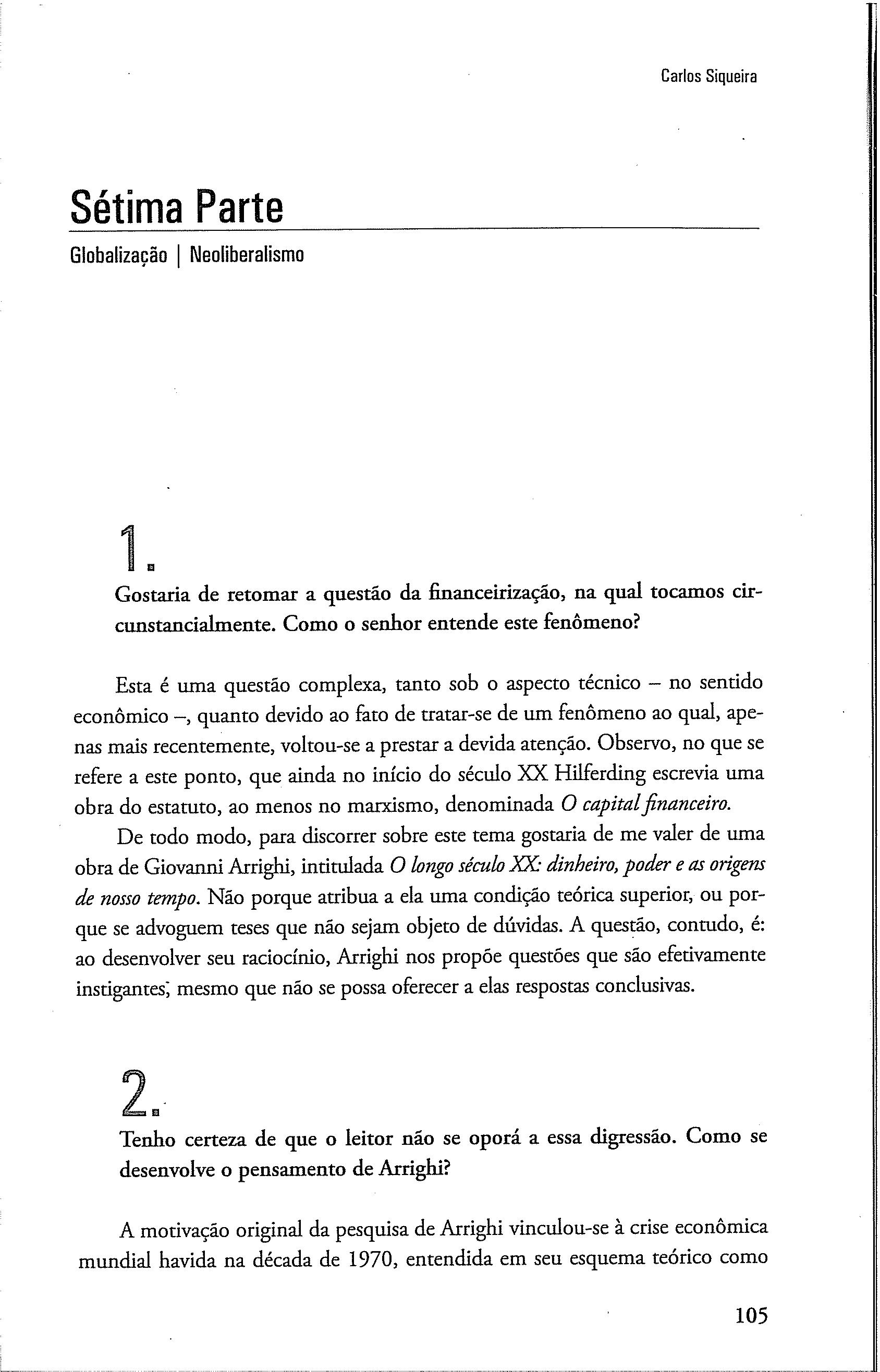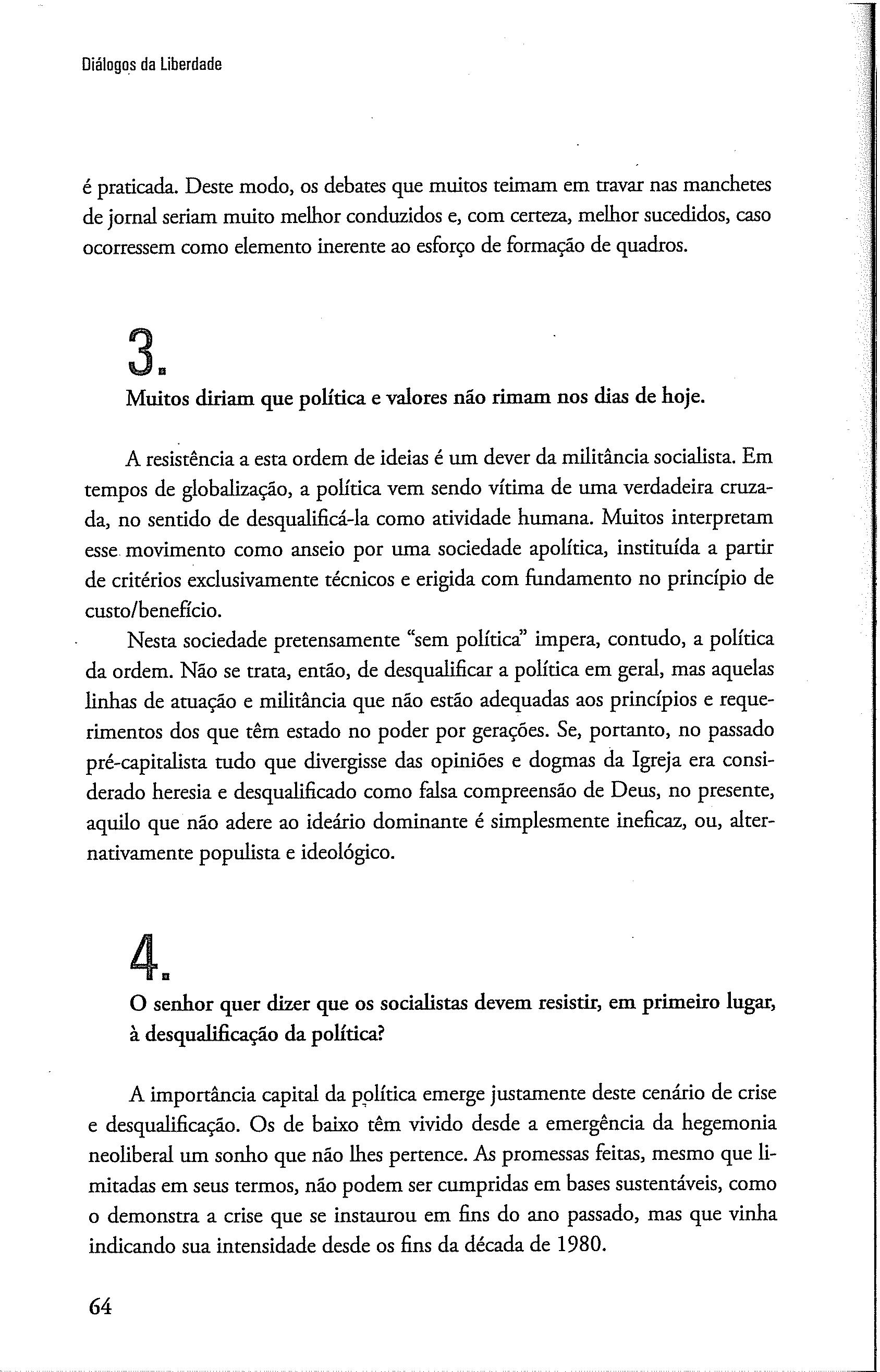 Publicação de 2009 que consiste em uma entrevista com Carlos Siqueira acerca de temas ligados ao socialismo, como: a diferença entre a concepção socialista e a liberal sobre a Liberdade; a necessidade de uma reforma política; características do neoliberalismo; qual o papel do PSB atualmente, entre outros.