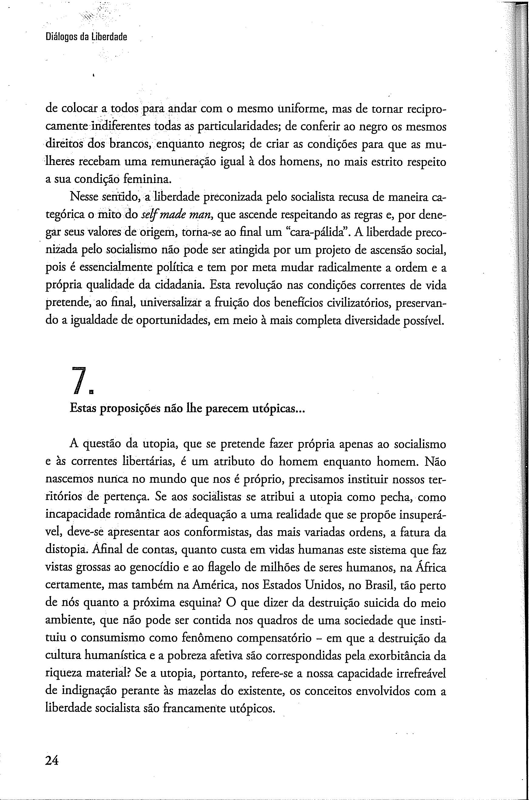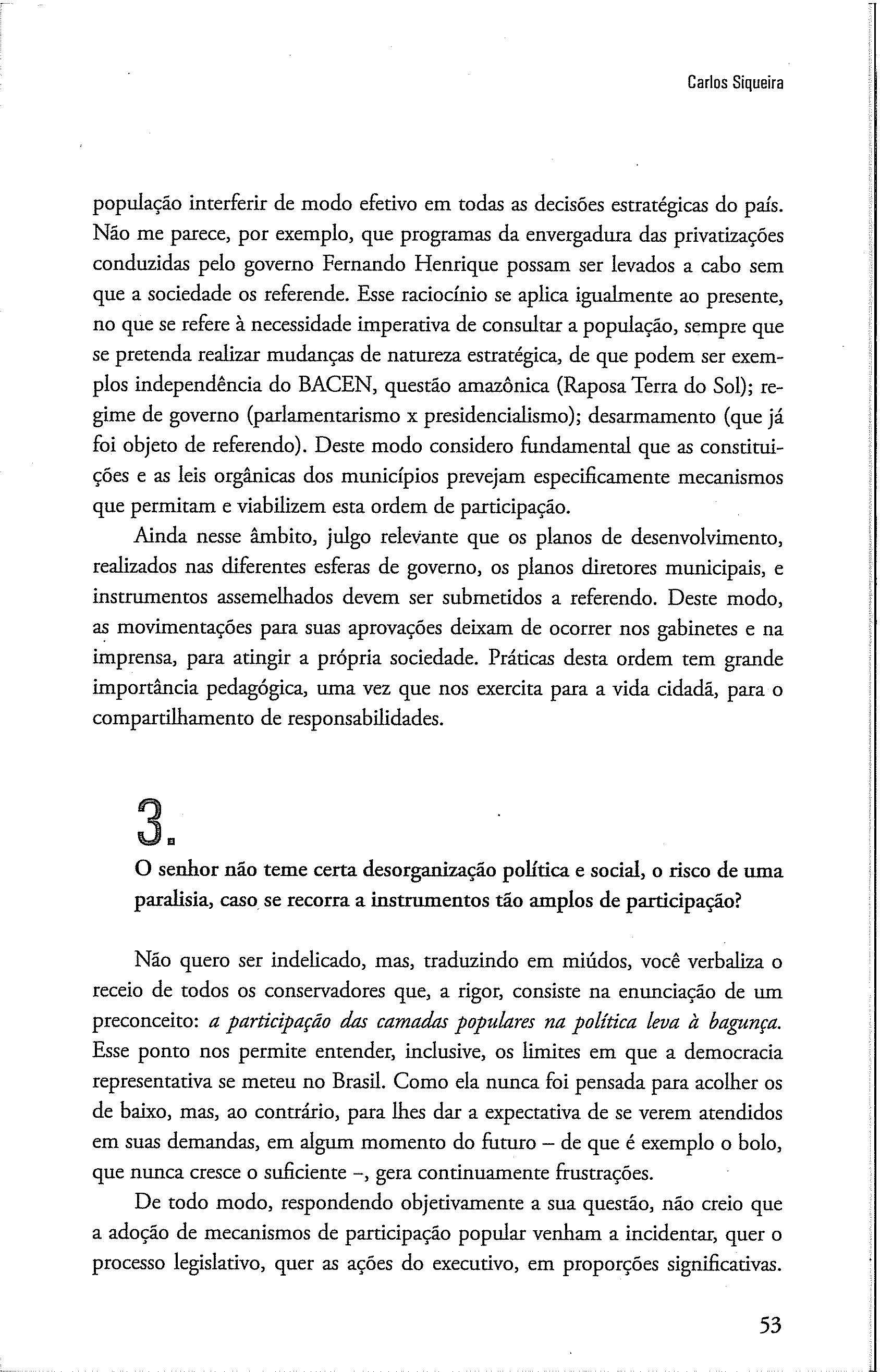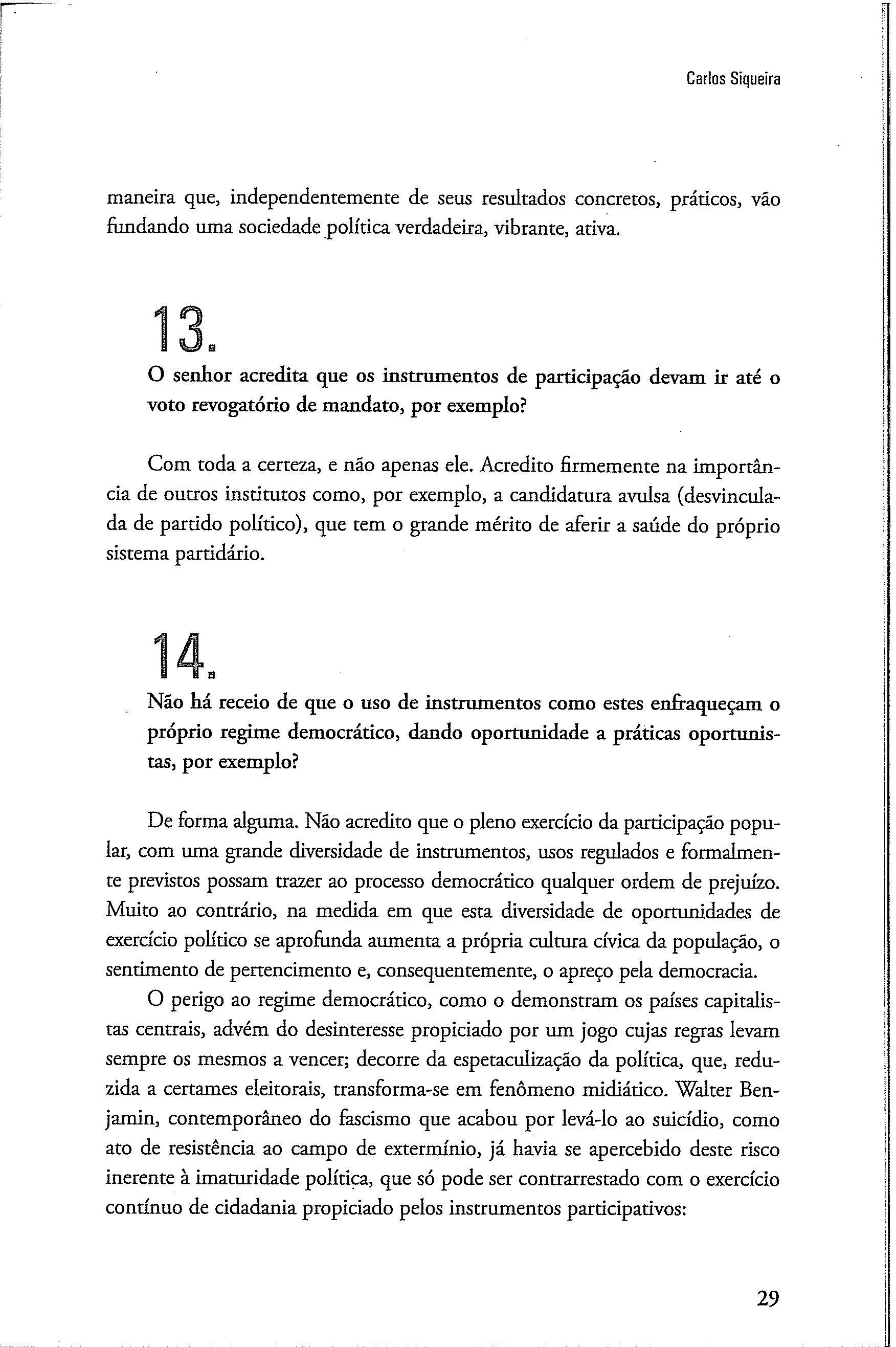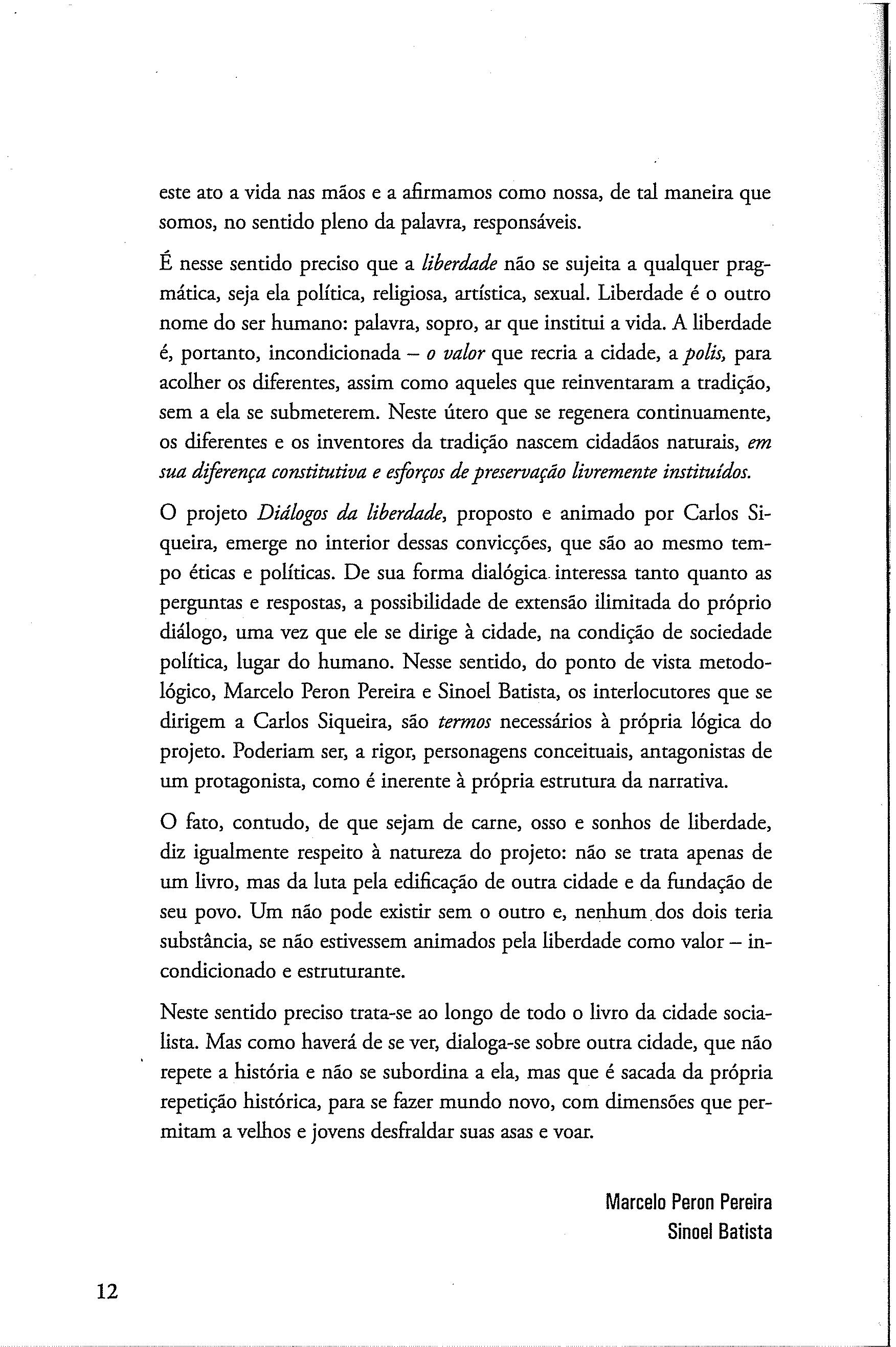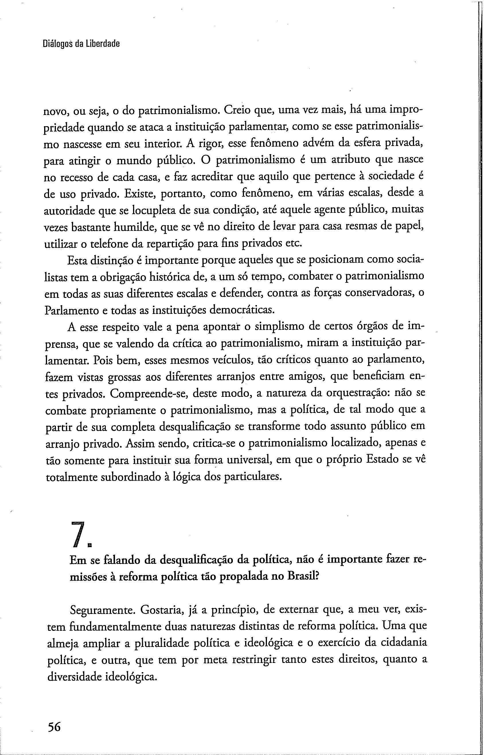 Publicação de 2009 que consiste em uma entrevista com Carlos Siqueira acerca de temas ligados ao socialismo, como: a diferença entre a concepção socialista e a liberal sobre a Liberdade; a necessidade de uma reforma política; características do neoliberalismo; qual o papel do PSB atualmente, entre outros.