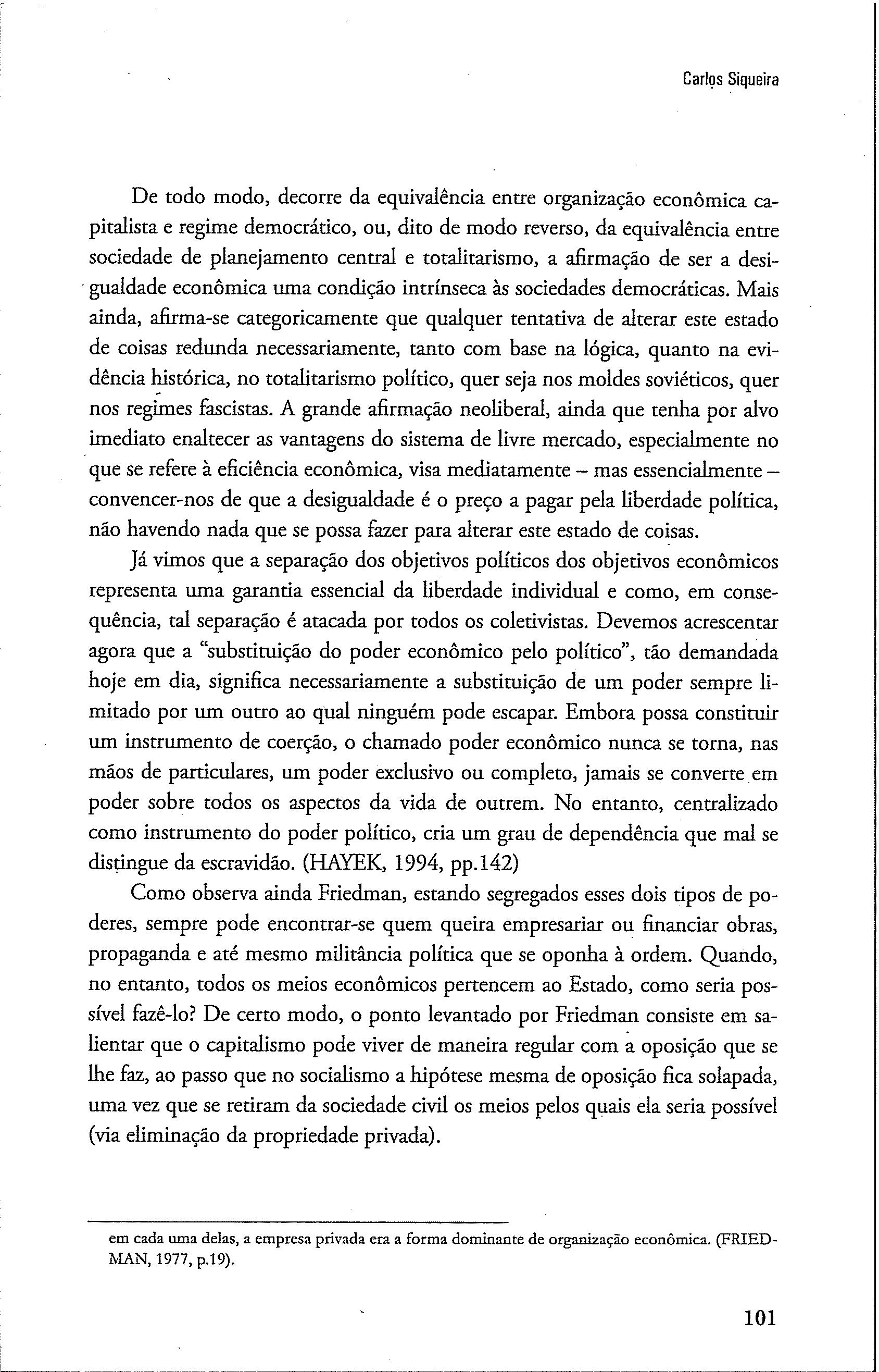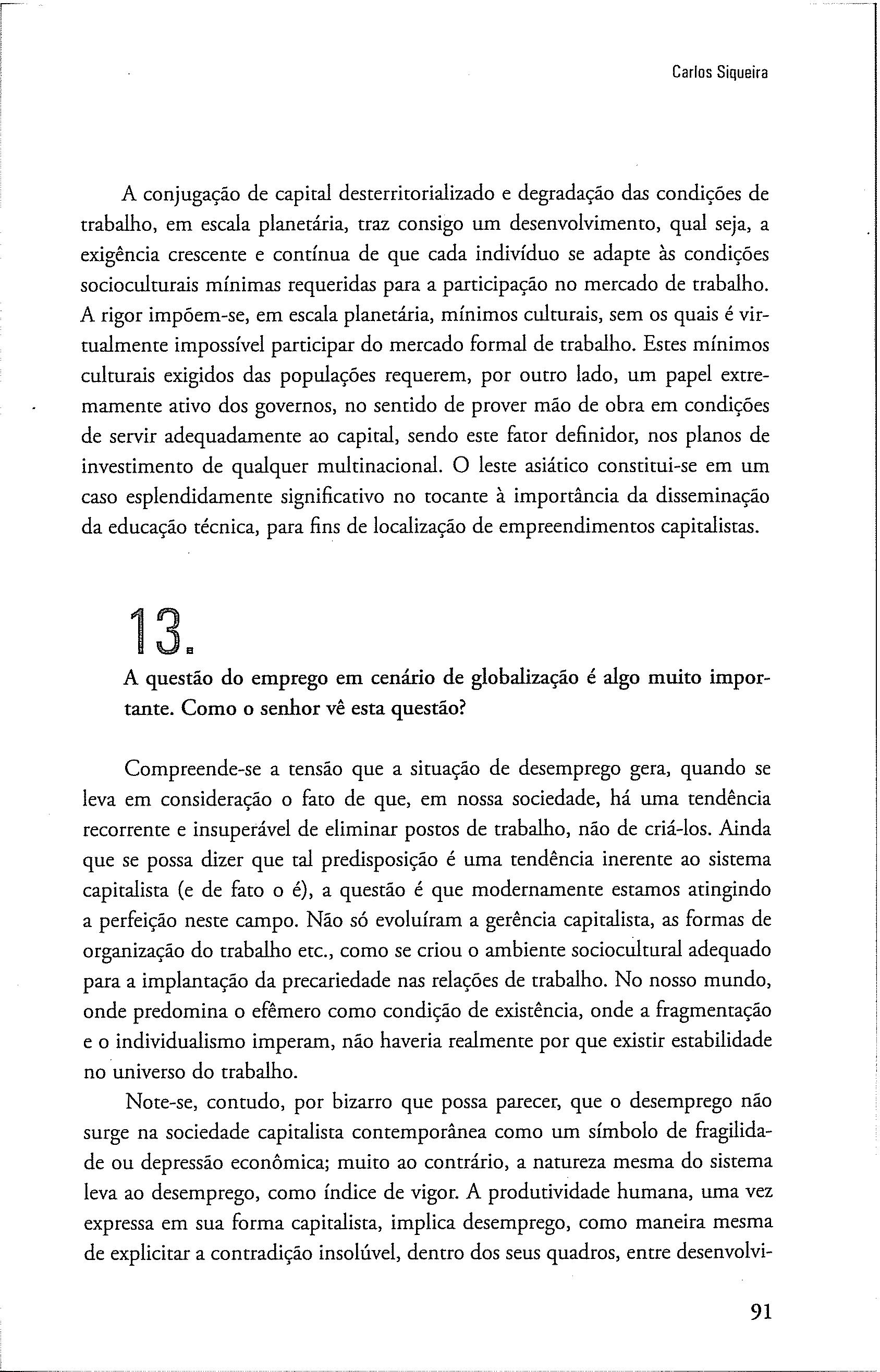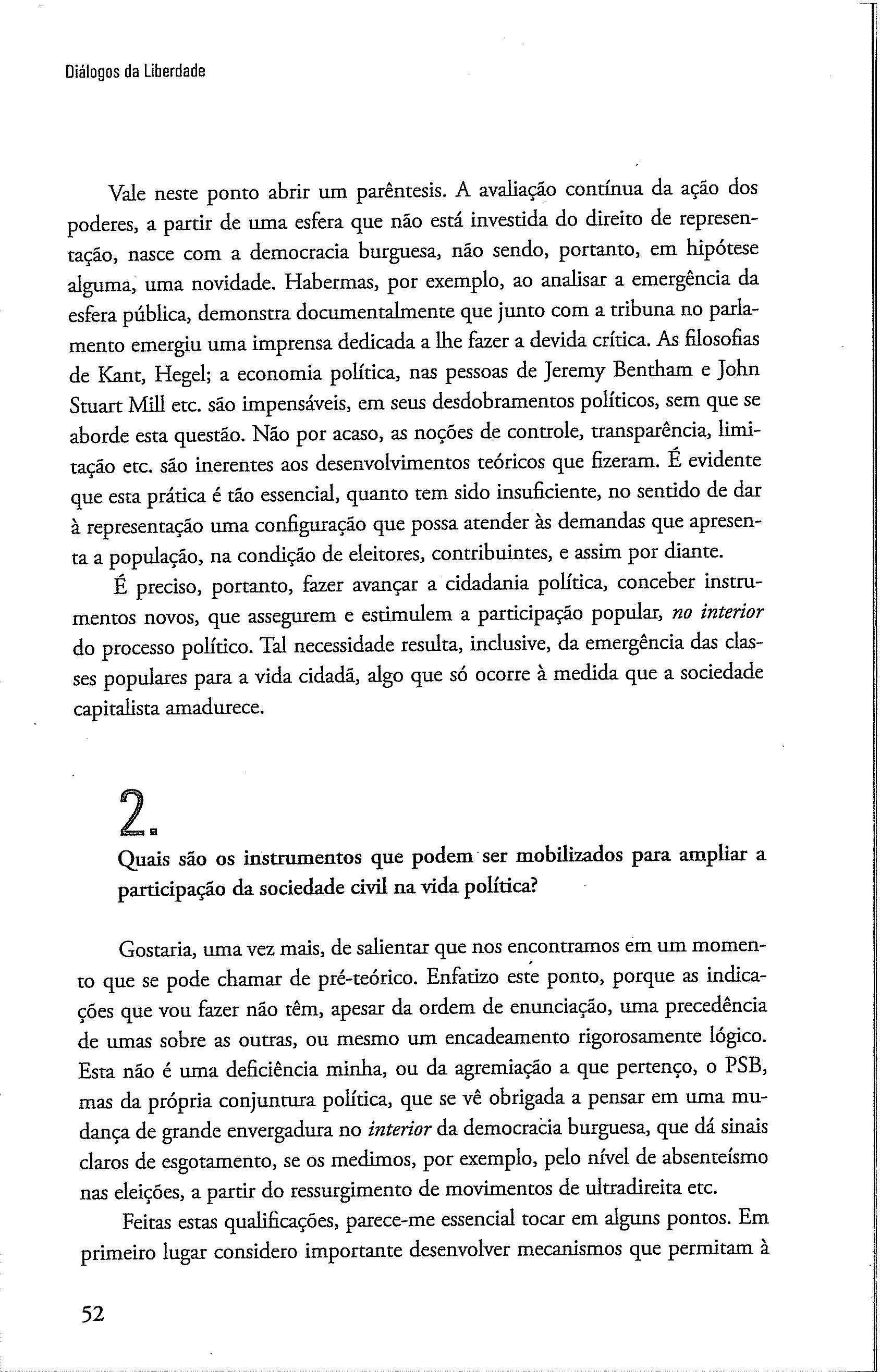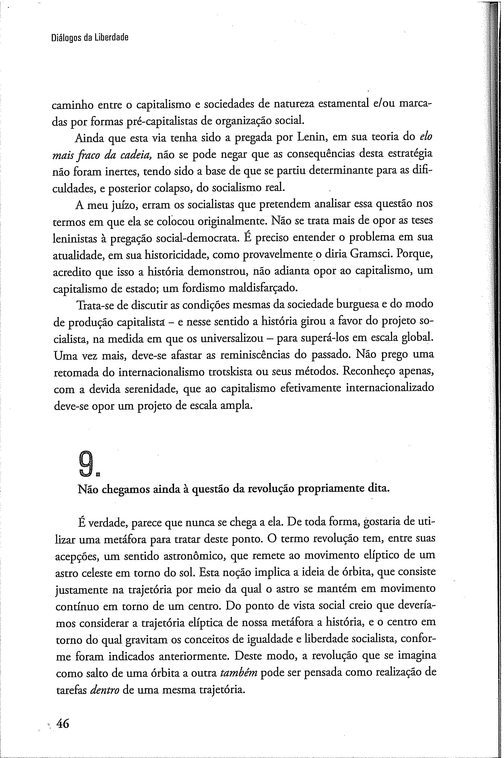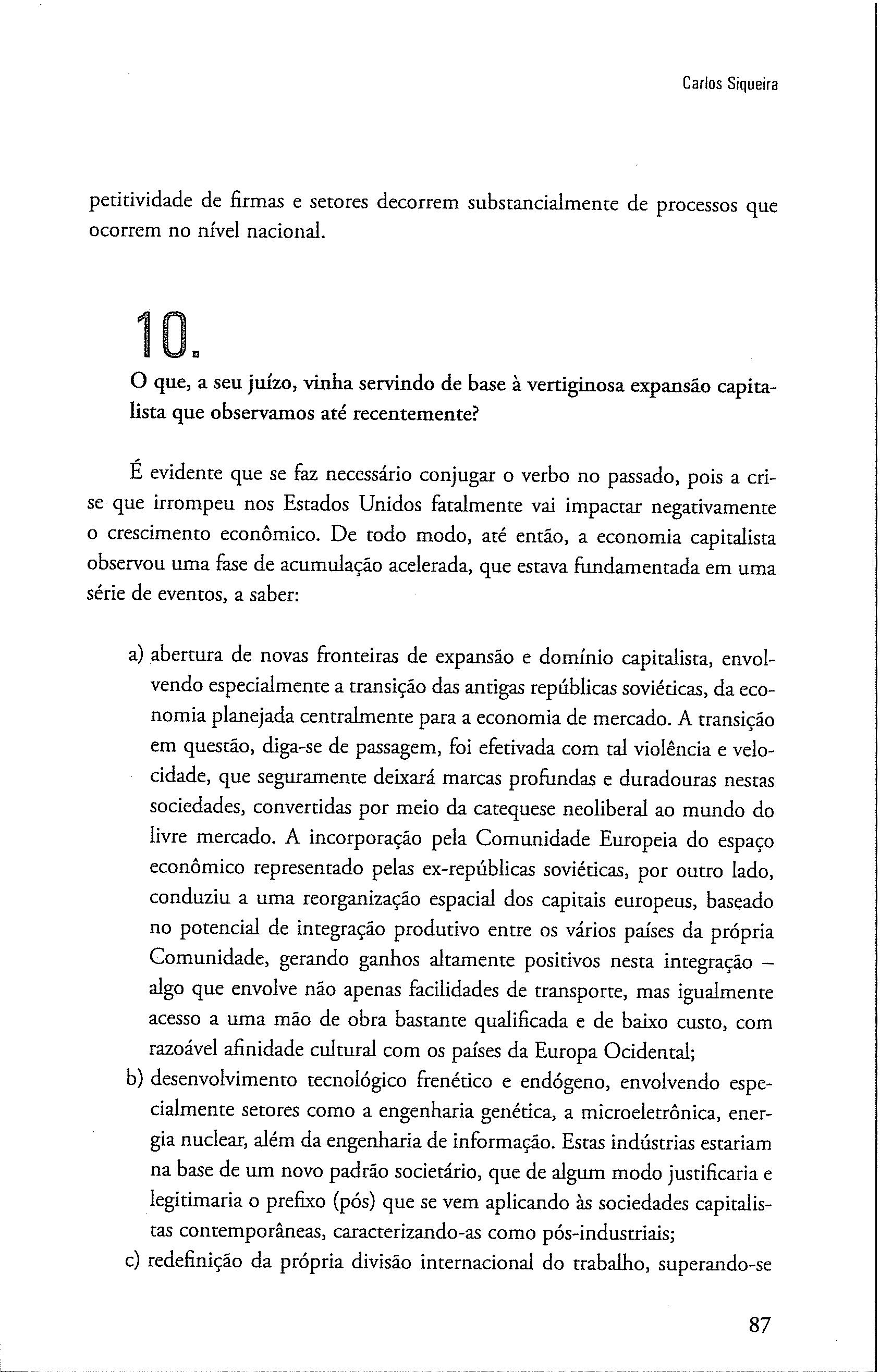 Publicação de 2009 que consiste em uma entrevista com Carlos Siqueira acerca de temas ligados ao socialismo, como: a diferença entre a concepção socialista e a liberal sobre a Liberdade; a necessidade de uma reforma política; características do neoliberalismo; qual o papel do PSB atualmente, entre outros.