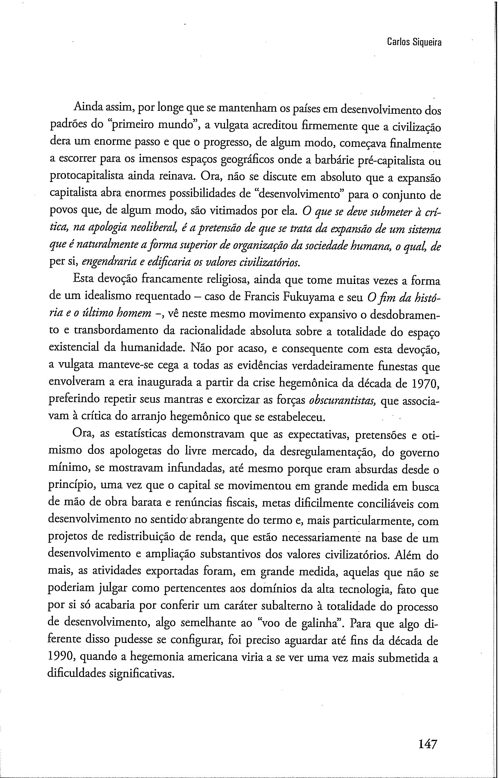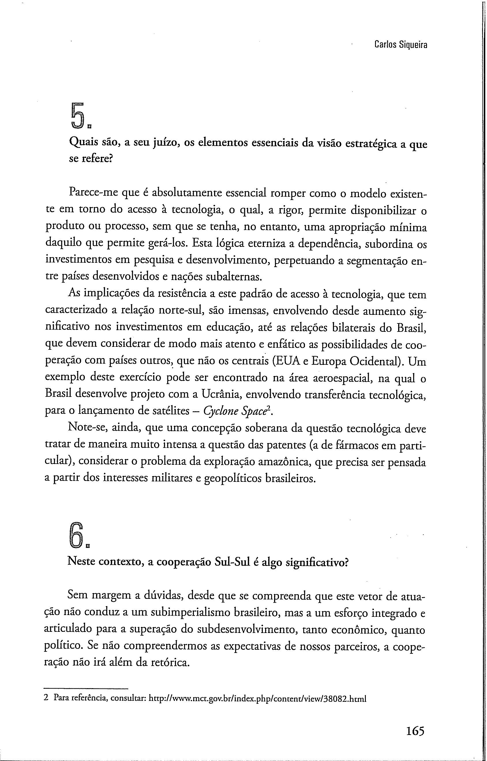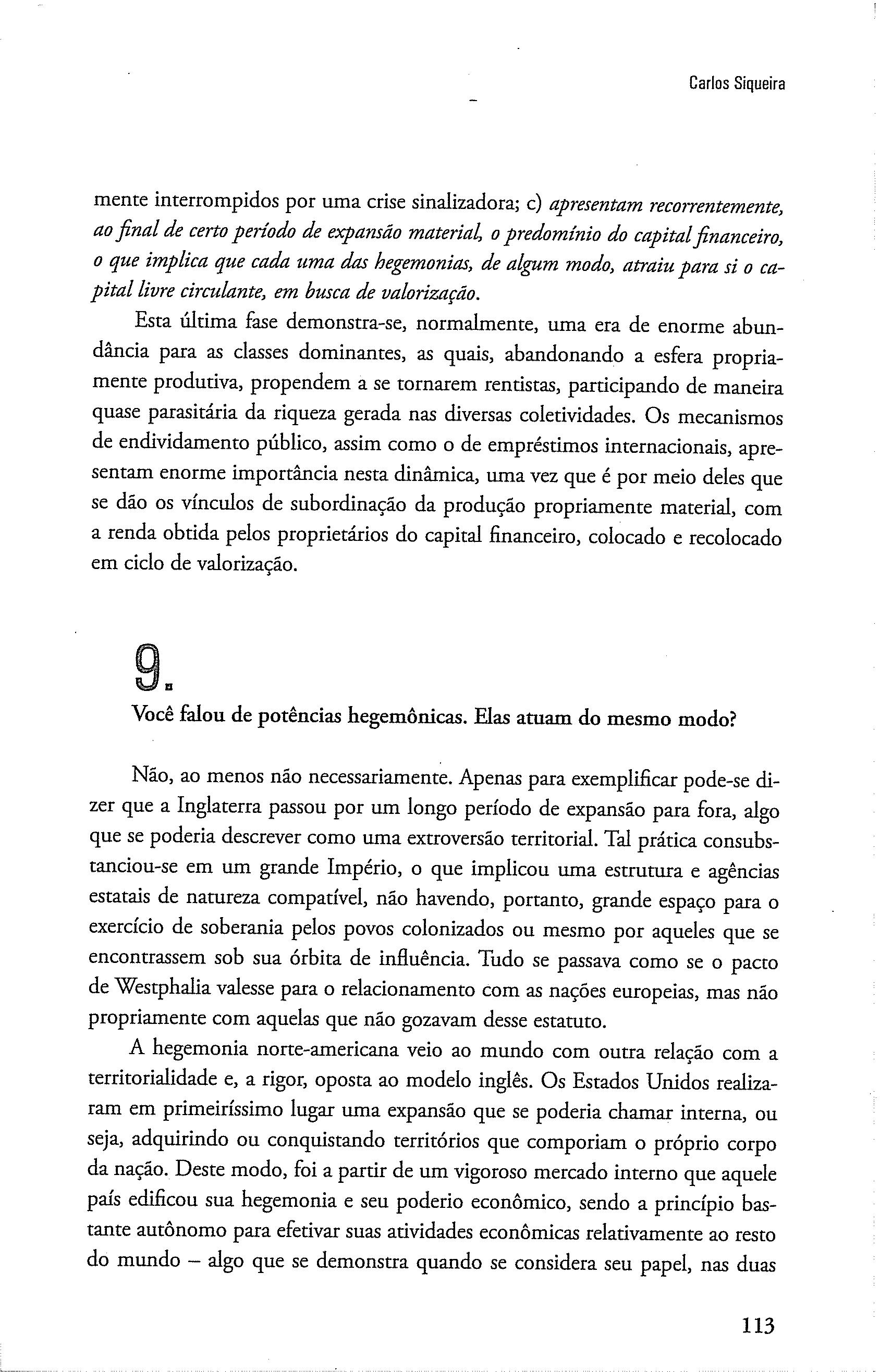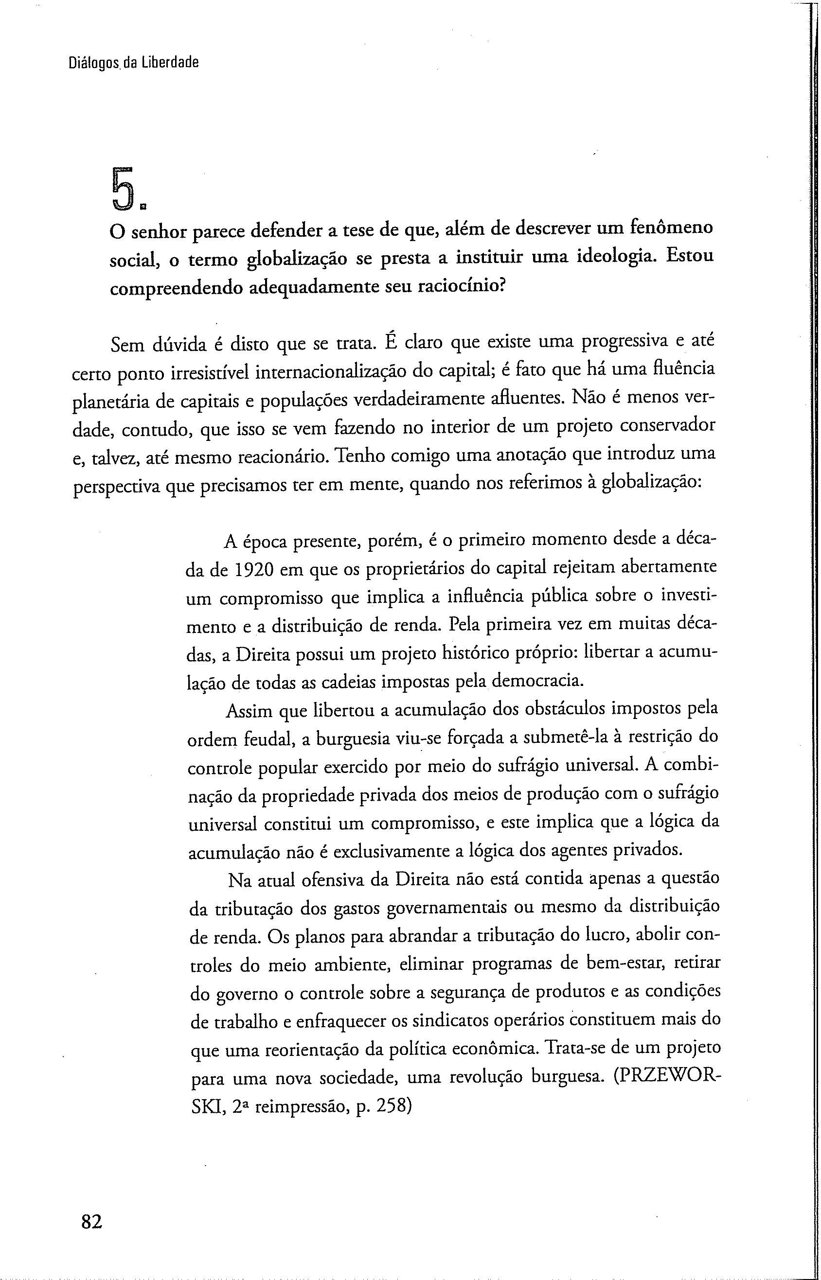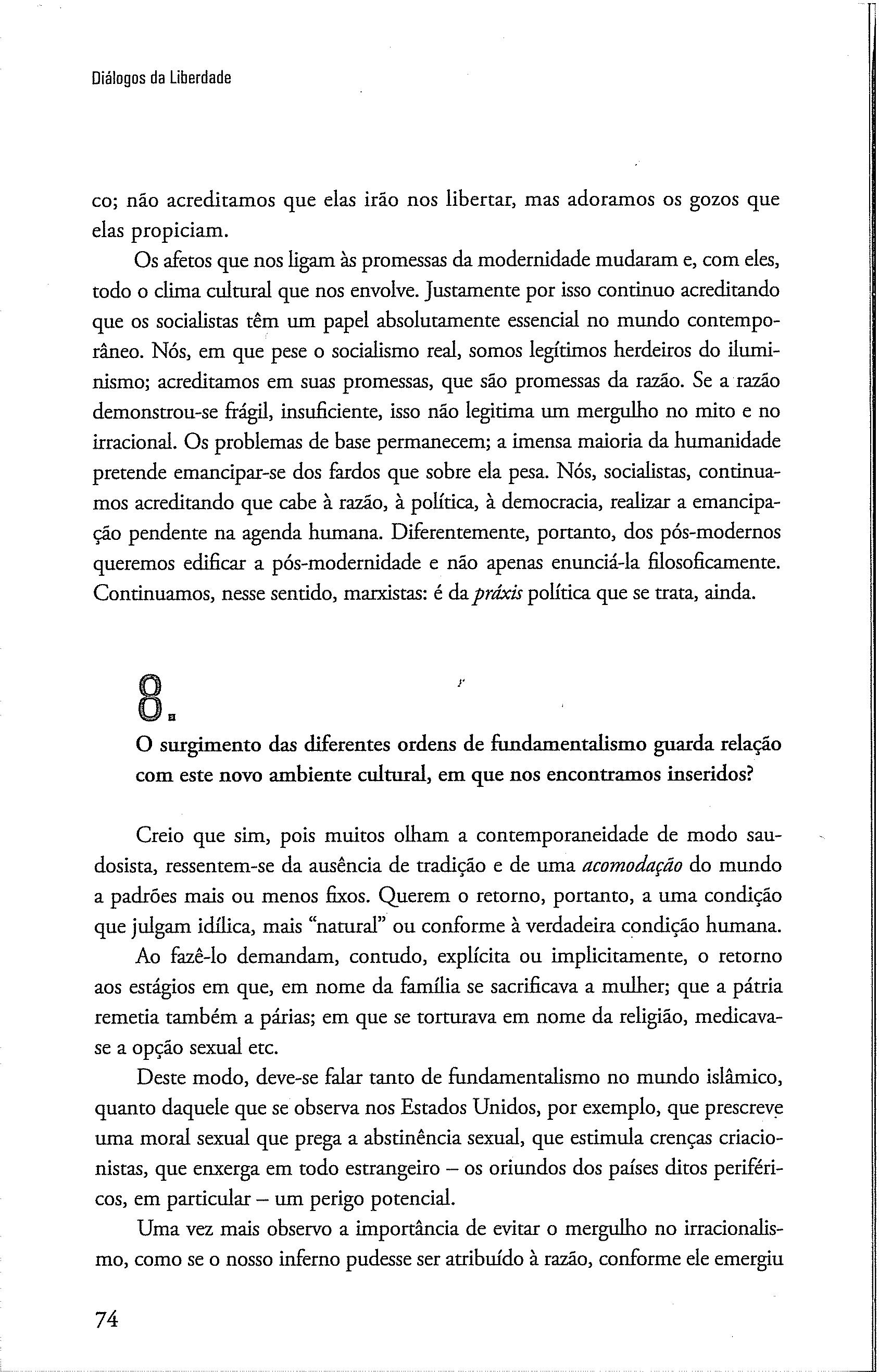 Publicação de 2009 que consiste em uma entrevista com Carlos Siqueira acerca de temas ligados ao socialismo, como: a diferença entre a concepção socialista e a liberal sobre a Liberdade; a necessidade de uma reforma política; características do neoliberalismo; qual o papel do PSB atualmente, entre outros.