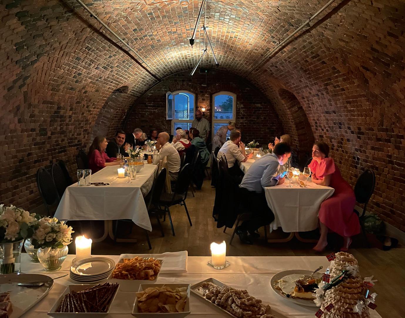 At det hele foregår i helt fantastiske omgivelser i det gamle tårnkammeret på festningen, og at det serveres nydelig mat og ikke minst gode viner, bidrar nok også til at de fleste går «all in» og bidrar i mysteriet.