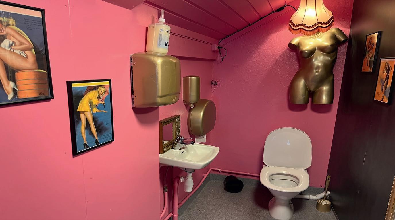 det gamle veggmaleriet til den legendariske multikunstneren Per Stian Johnsen. Dette historiske og svært verdifulle maleriet gir rommet karakter og en følelse av historie, samtidig som det knytter lokalet til byens røtter som kunstnerby.