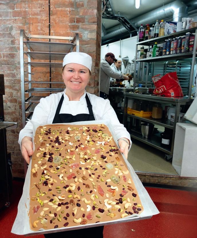Marsipan med en historie Marsipanen har blitt en suksesshistorie i seg selv. Fryda, butikkens egen marsipanfabrikk, produserer håndlagde marsipanfigurer av nydelig, norsk kvalitetsmarsipan. Michael forklarer at ideen om den «frittgående marsipangrisen» kom under lockdown i 2020, og den ble raskt en snakkis.