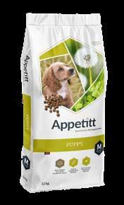 Appetitt Puppy tørrfôr er tilpasset valper frem til ca. 1 års alder. Fôret inneholder alt valpen trenger for en sunn og god vekst. 9652011287%