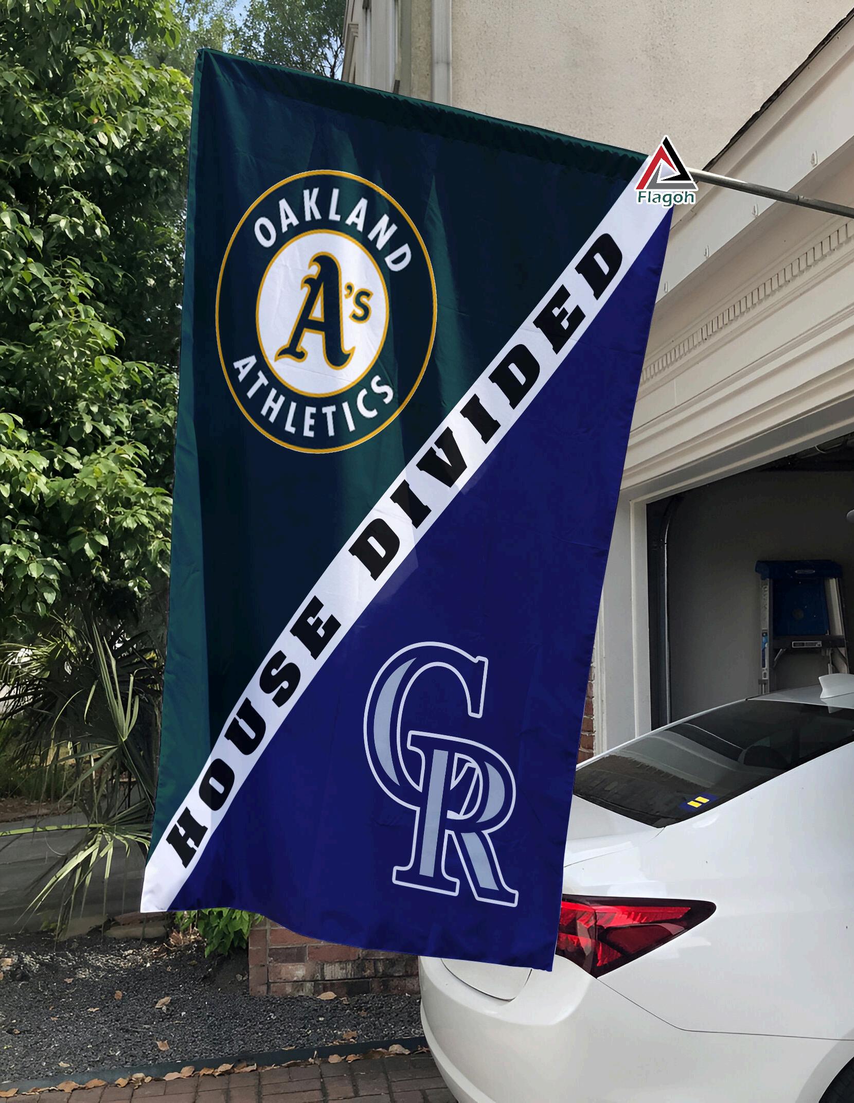 Celebrate the thrilling rivalry between the Oakland Athletics and Colorado Rockies with the bold and vibrant Athletics vs Rockies House Divided Flag is MLB house divided ag is the perfect way to let everyone know where your allegiances lie, showcasing your love for these iconic baseball teams