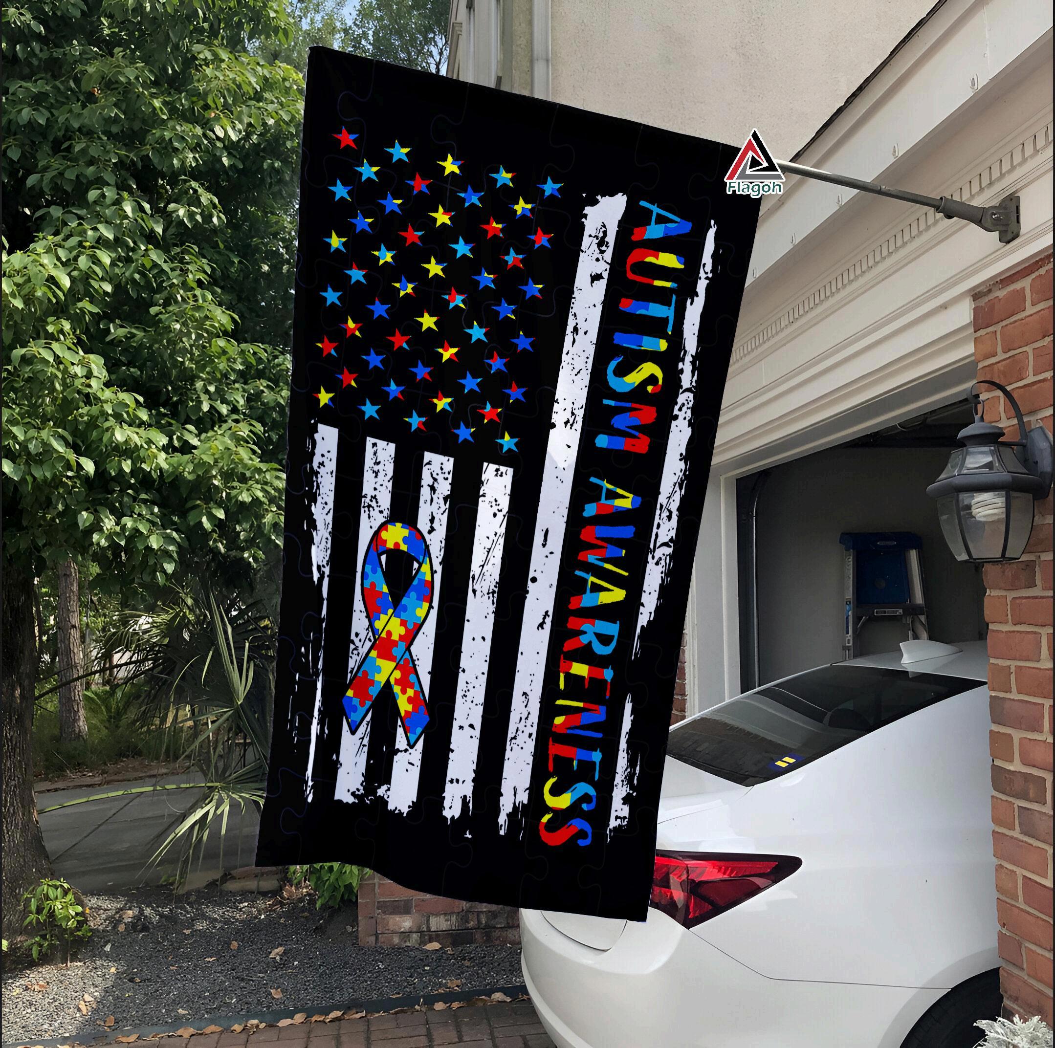 Autism Awareness American Flag, Ribbon Puzzle Garden Flag – A Symbol of Support and Unity