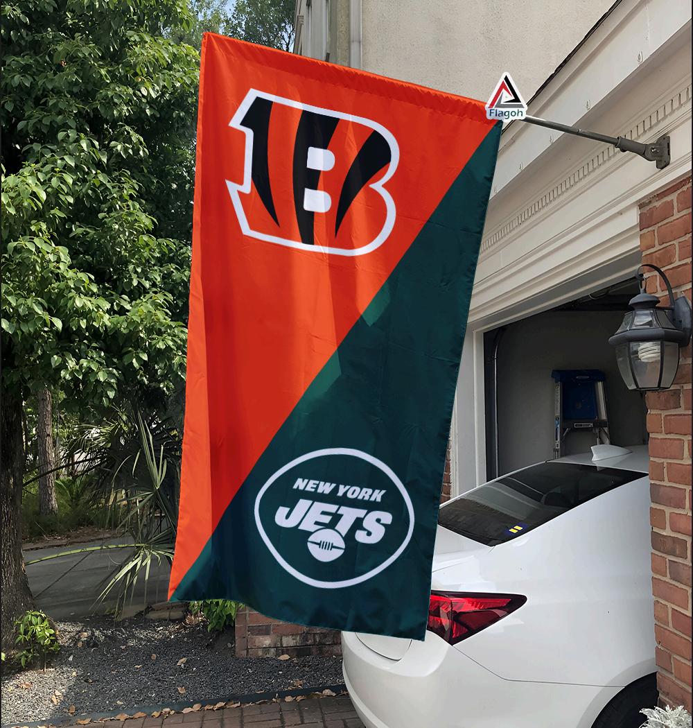 Bengals vs Jets House Divided Flag, NFL House Bengals vs Jets House Divided Flag, NFL House