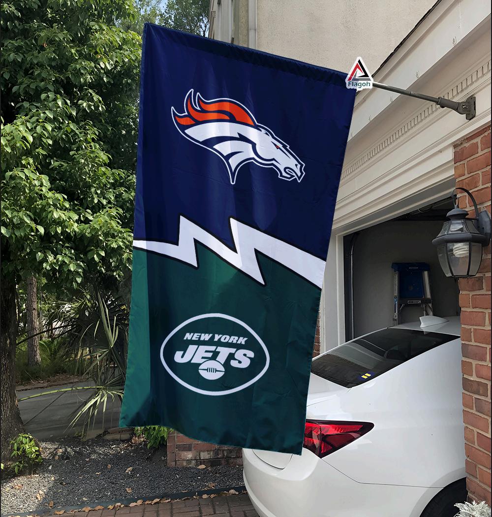 Broncos vs Jets House Divided Flag, NFL House Divided FlagShowcase Your Team Spirit!