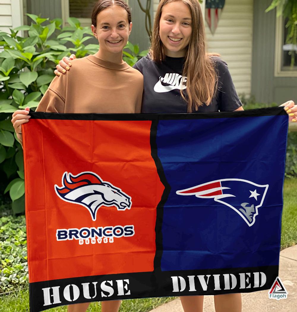 Broncos vs Patriots House Divided Flag: Show Your NFL Pride with the Ultimate Rivalry Decor