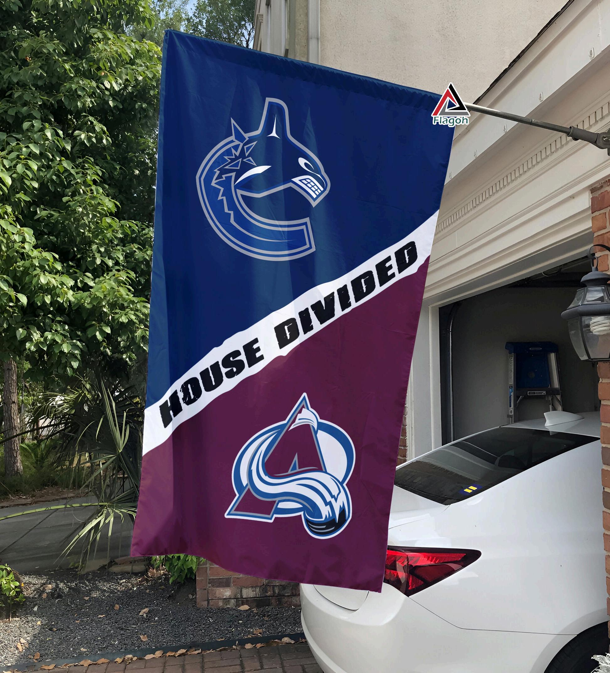 Don't miss out on owning the Canucks vs Avalanche House Divided Flag, NHL House Divided Flag a perfect blend of team spirit and fan pride, designed to last and impress