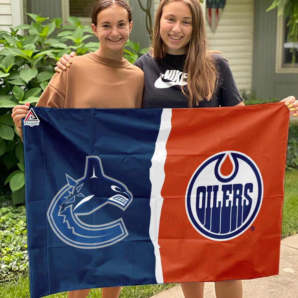 Canucks vs Oilers House Divided Flag, NHL House Divided Flag