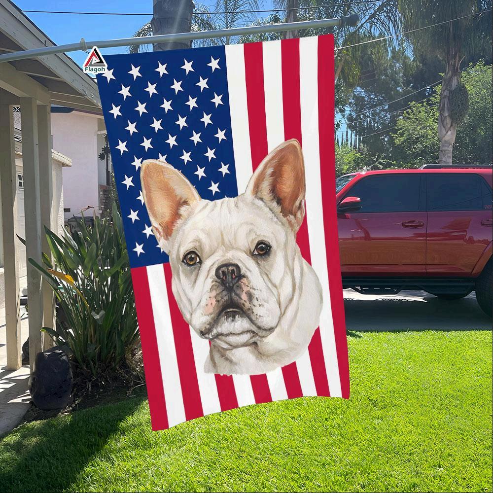 Show your love for both your furry friend and your country with the French Bulldog Patriotic American Flag, a delightful and unique US flag design that pet owners and patriots alike will adore. This flag beautifully blends the charm of the beloved French Bulldog with the iconic stars and stripes of the American flag, making it a standout addition to any home, garden, or pet-friendly space.
