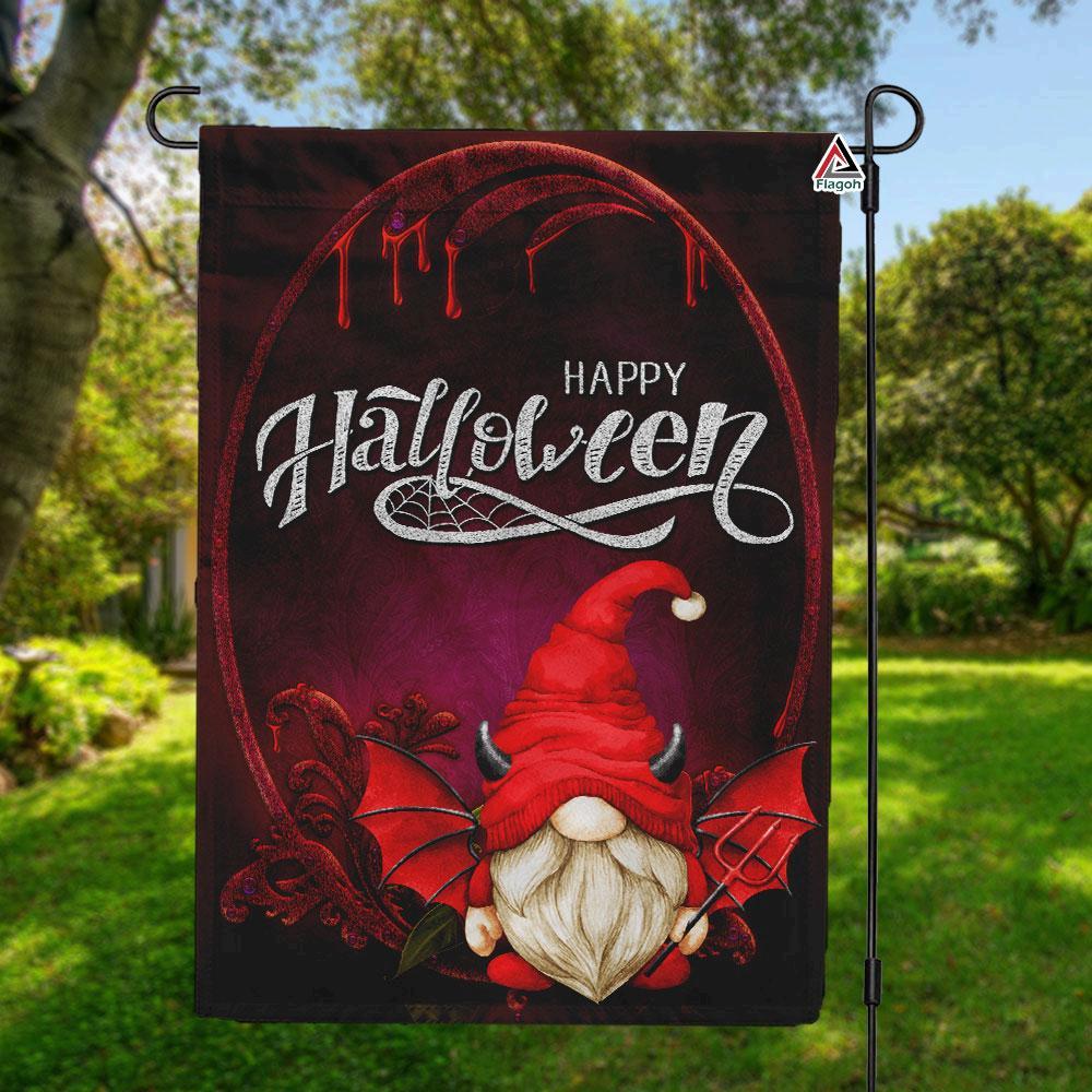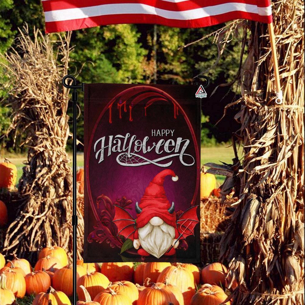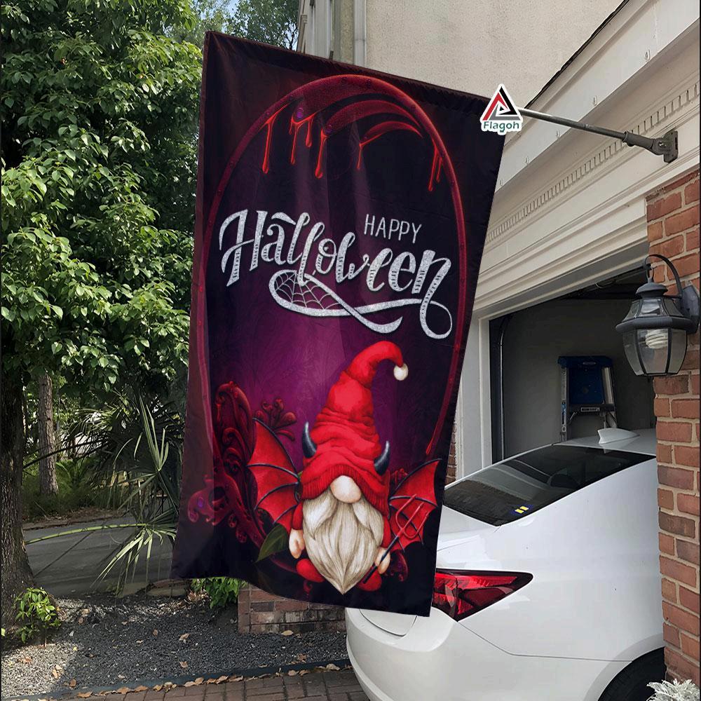 Celebrate Spooky Fun with the Happy Halloween Gnome Flag –Funny Devil Boy & Red Monster Designs