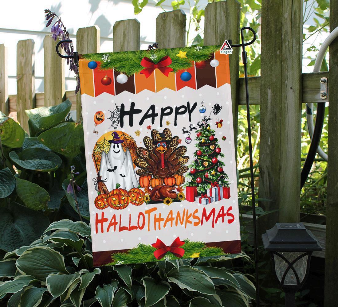 Celebrate the Season with Happy HalloThanksMas Garden Flag: Perfect October Yard Decoration