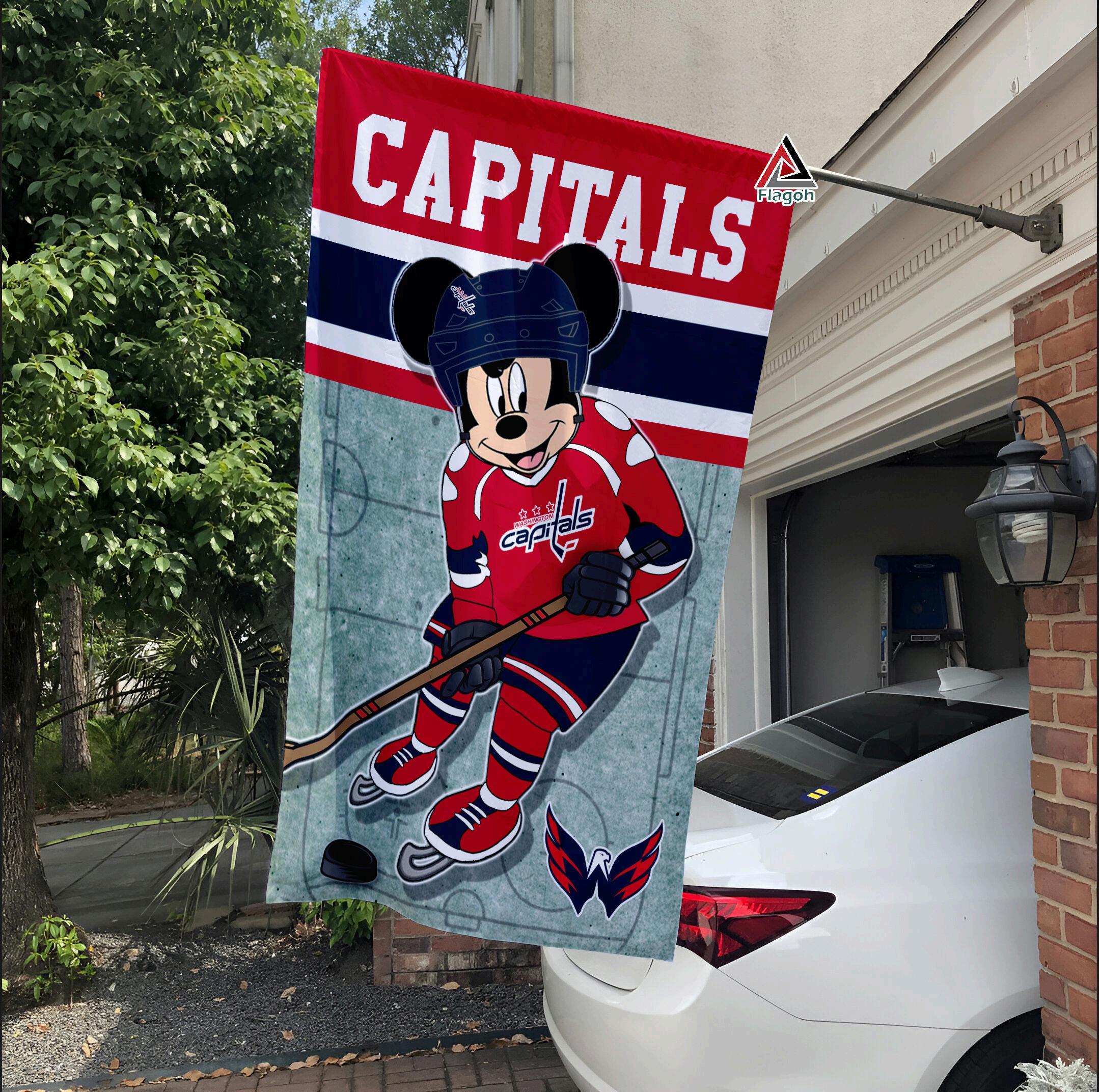 The Washington Capitals flag featuring Mickey Hockey is designed to bring energy and excitement wherever it's displayed Crafted with premium materials, this flag boasts vibrant colors that stand out whether you’re waving it at a game or showcasing it in your home