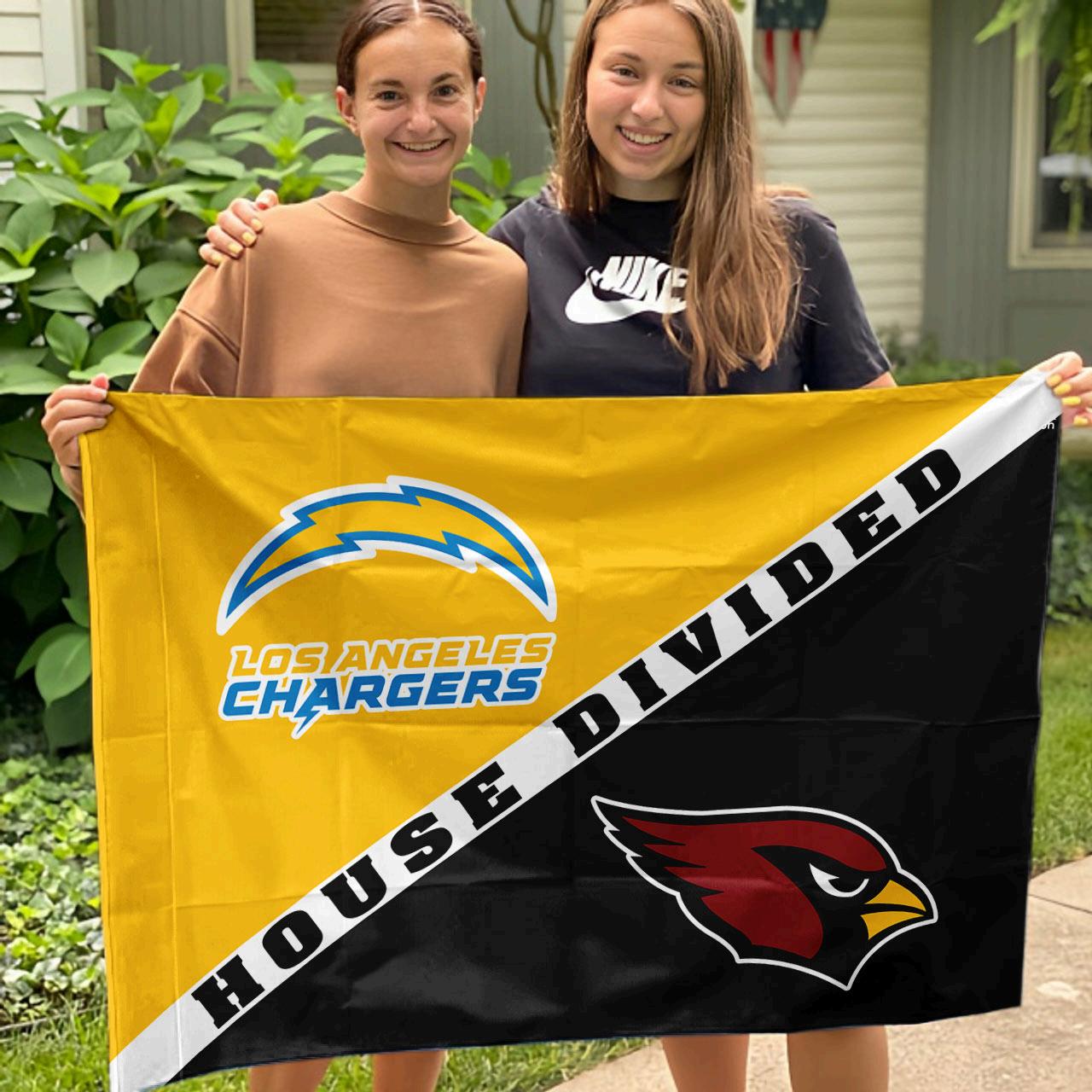 Show your unwavering team loyalty with the Chargers vs Cardinals House Divided Flag, NFL House Divided Flag, a must-have for true football enthusiasts is ag uni uely captures the spirit of both teams, making it a striking addition to any home or fan collection