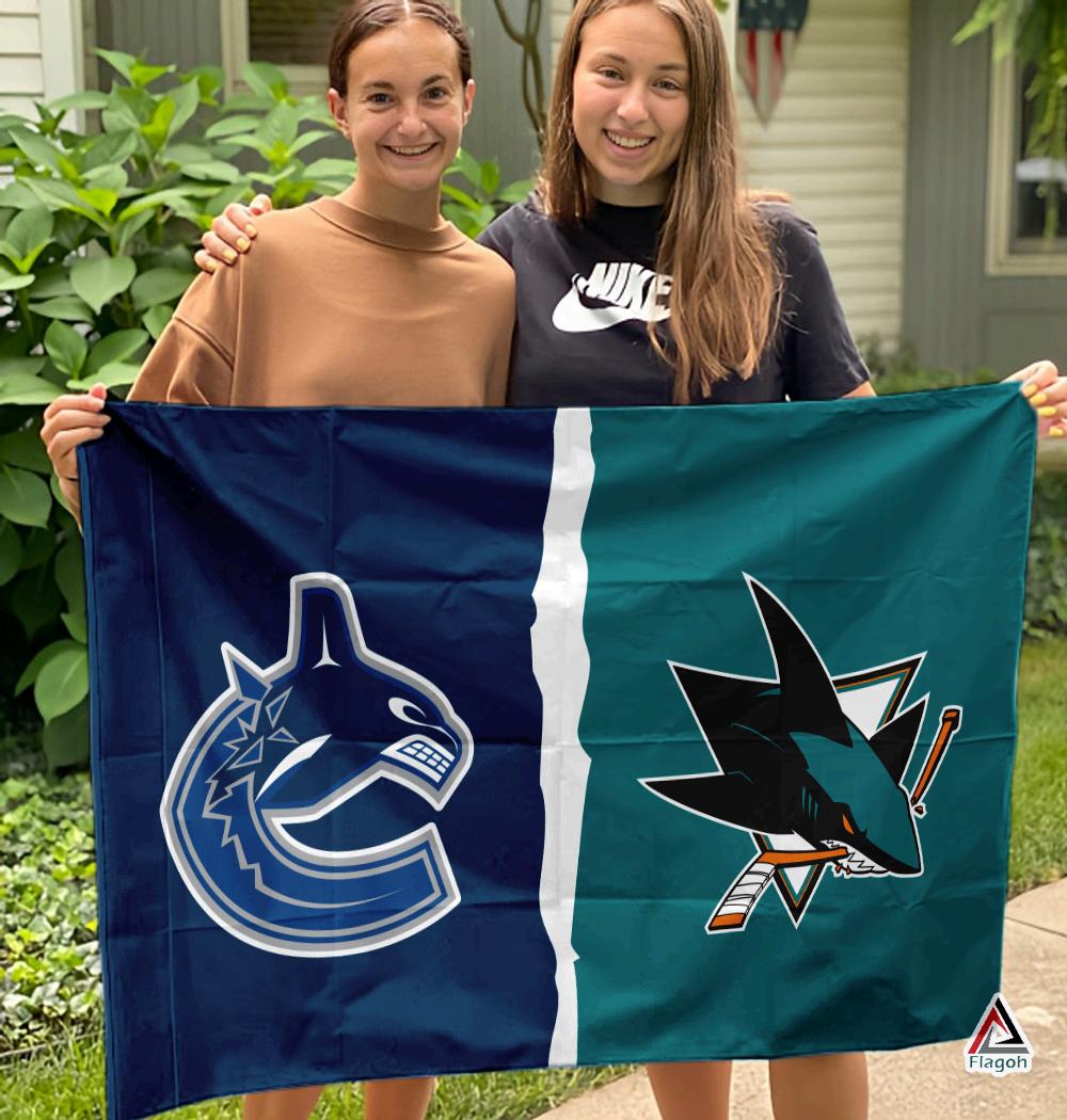 Cheer in Style with the Canucks vs Sharks House Divided Flag, NHL House Divided Flag