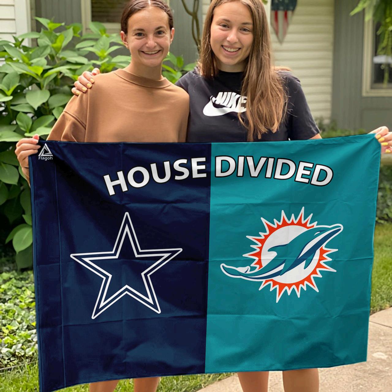 Cowboys vs Dolphins House Divided Flag, NFL House Divided Flag