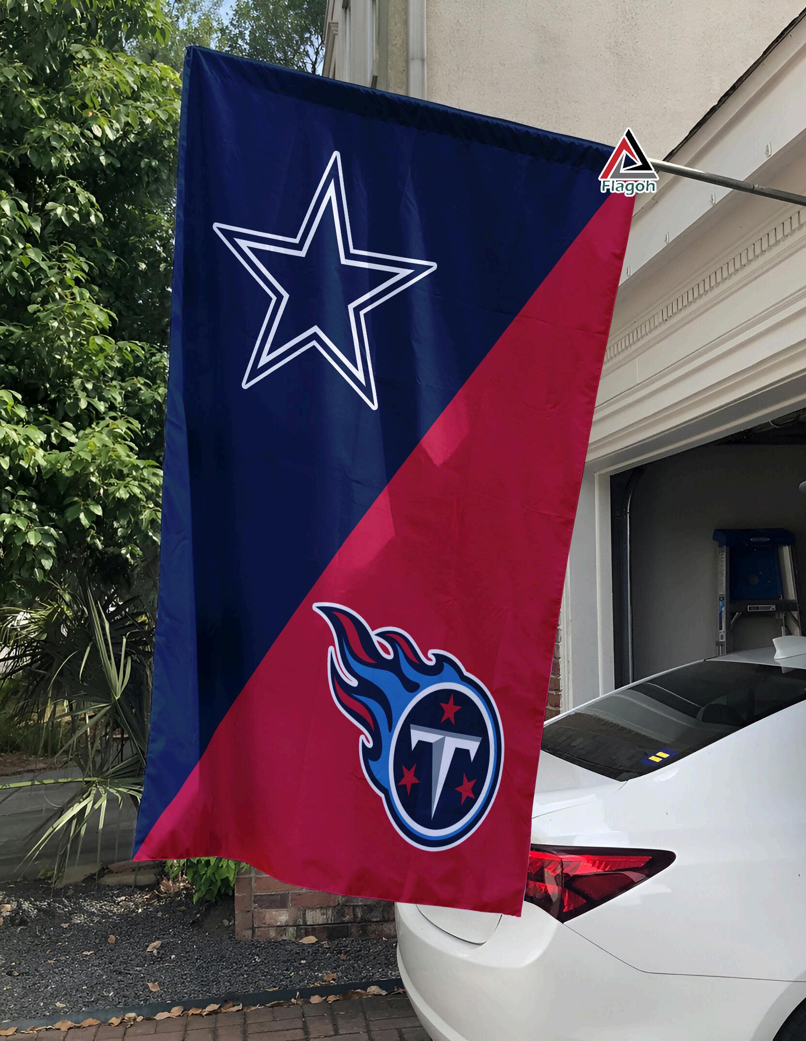 If you're a passionate NFL fan torn between supporting the Dallas Cowboys and the Tennessee Titans, the Cowboys vs Titans House Divided Flag is the ideal way to showcase your dual allegiance is stunning NFL House Divided Flag captures the spirit and intensity of both teams, making it a standout addition to any sports lover's collection.