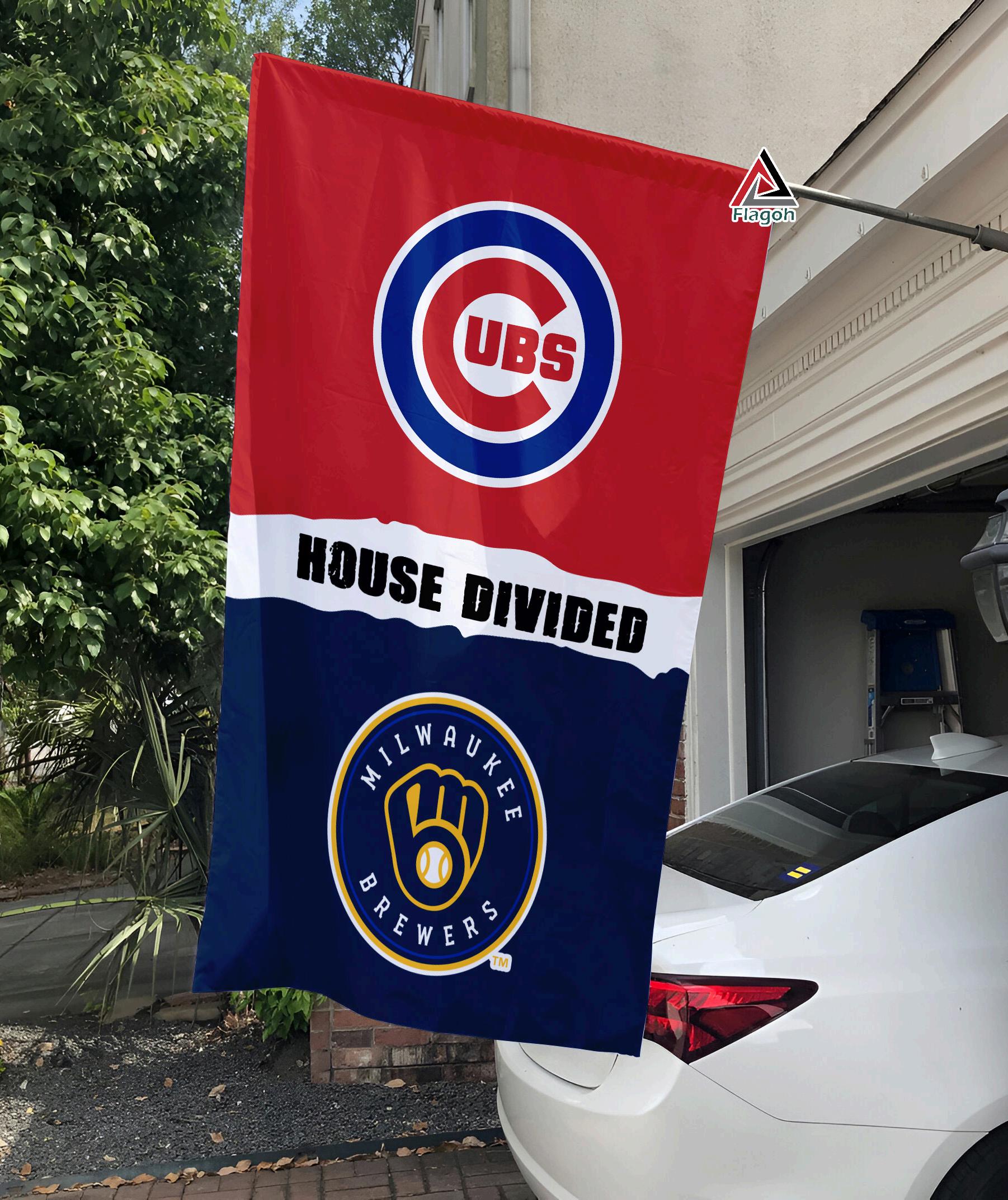Cubs vs Brewers House Divided Flag, MLB House Divided Flag