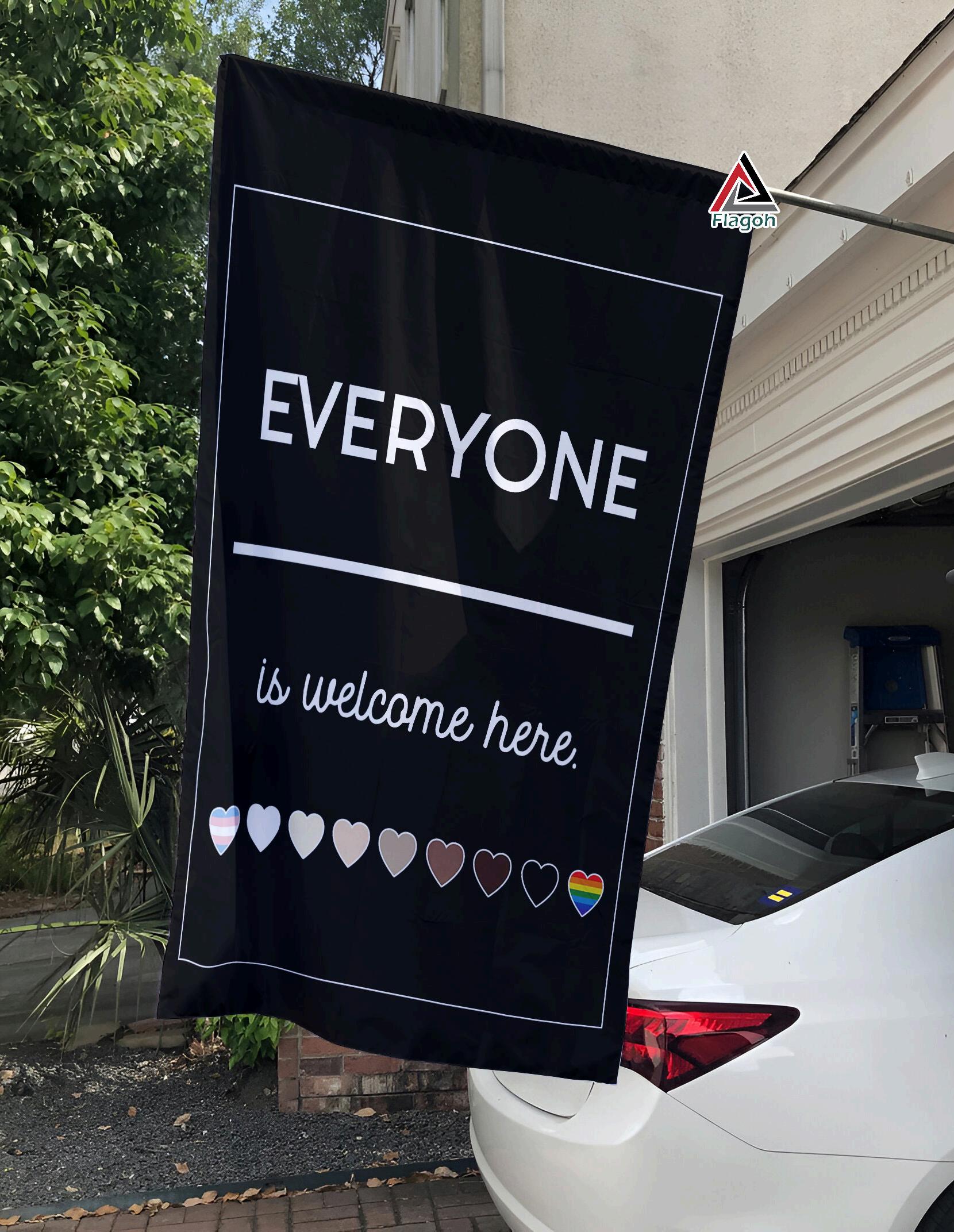 Express your support and allyship openly with the Everyone Is Welcome Here Flag, a beautiful Progress Pride Garden Decoration designed to brighten up any outdoor space is vibrant LBGT Rainbow Ally Welcome Flag is more than a decoration – it’s a statement of inclusivity and love