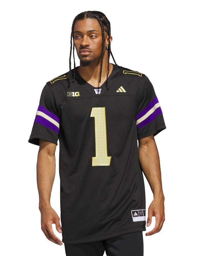 1 Washington Huskies Premier Strategy Jersey - Black, Limited Replica Fan Edition
