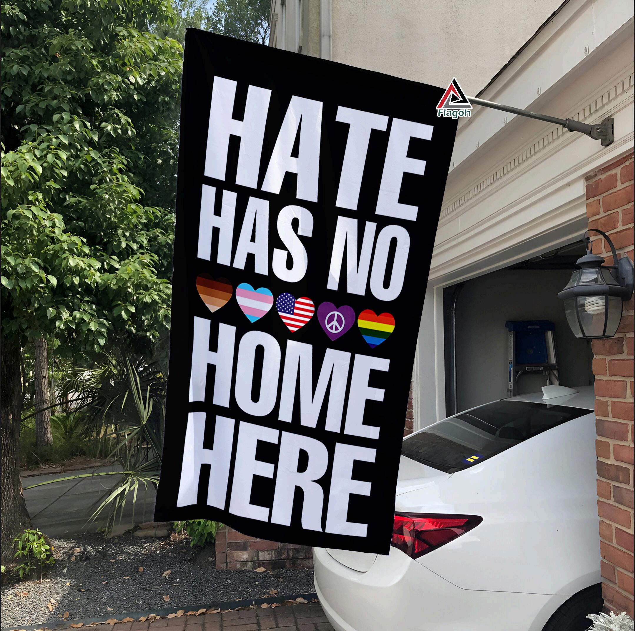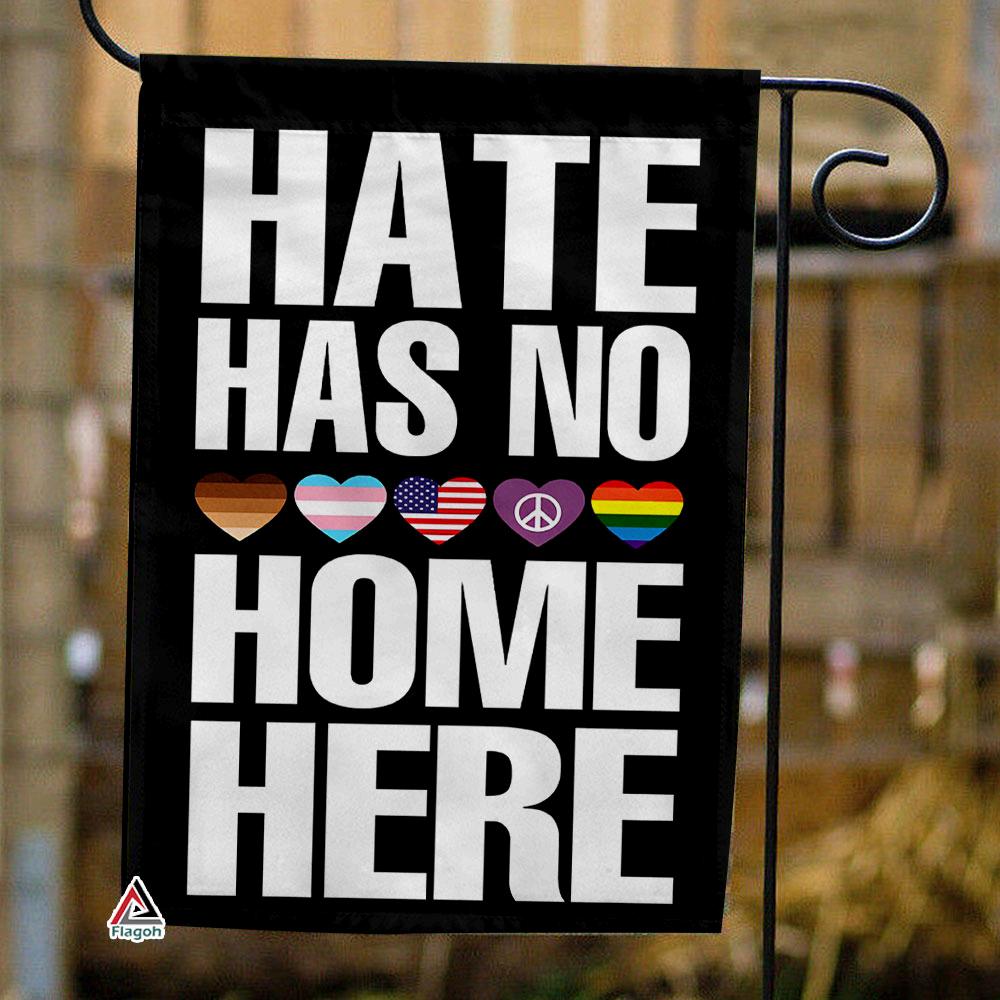 The Hate Has No Home Here Garden Flag is more than just an outdoor decoration it’s a symbol of unity and support for the LGBT community while promoting peace Crafted with durable materials, it’s designed to withstand all weather conditions, ensuring your message of love remains visible year-round