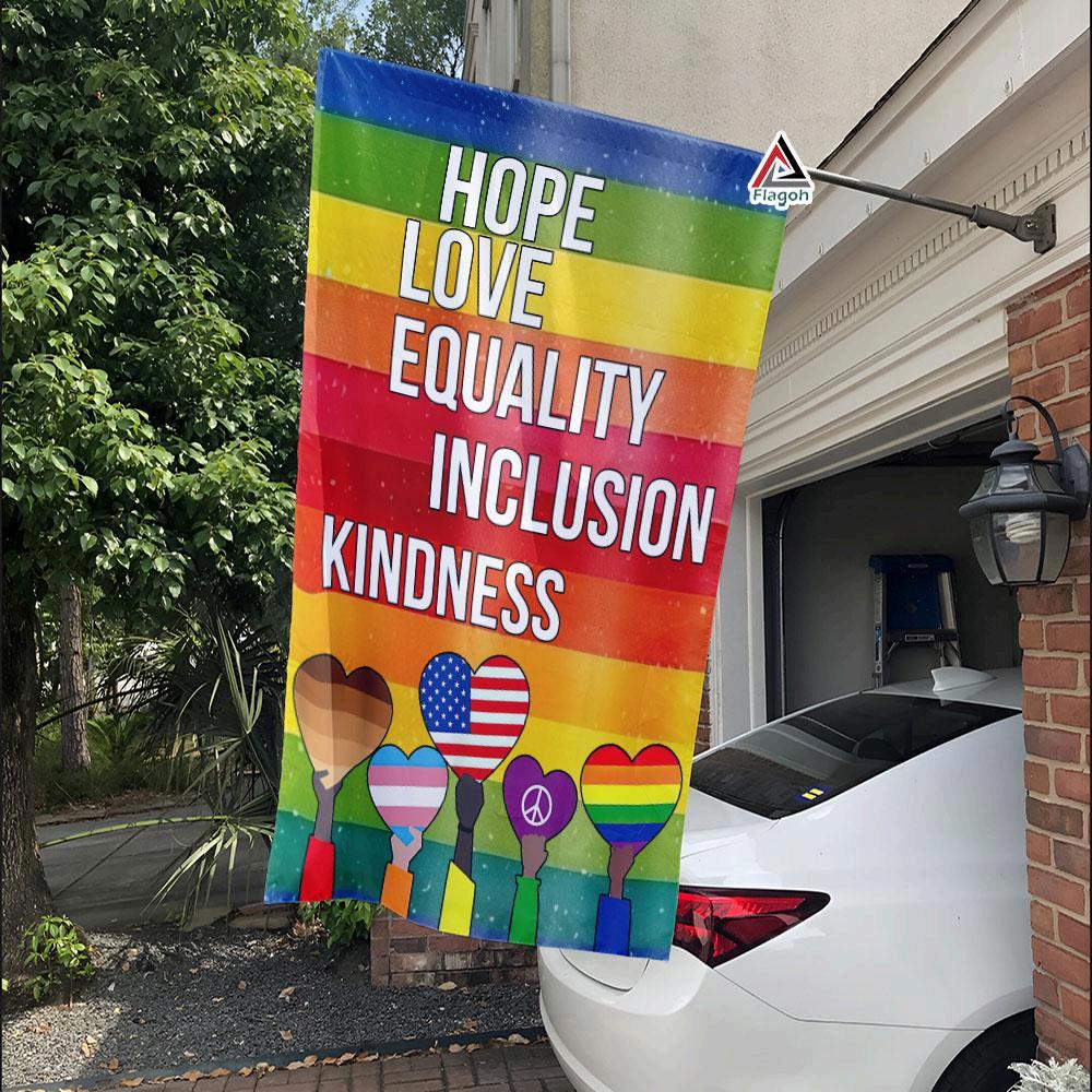 Hope Love Equality Inclusion Kindness Flag, LGBTQ Rainbow Flag