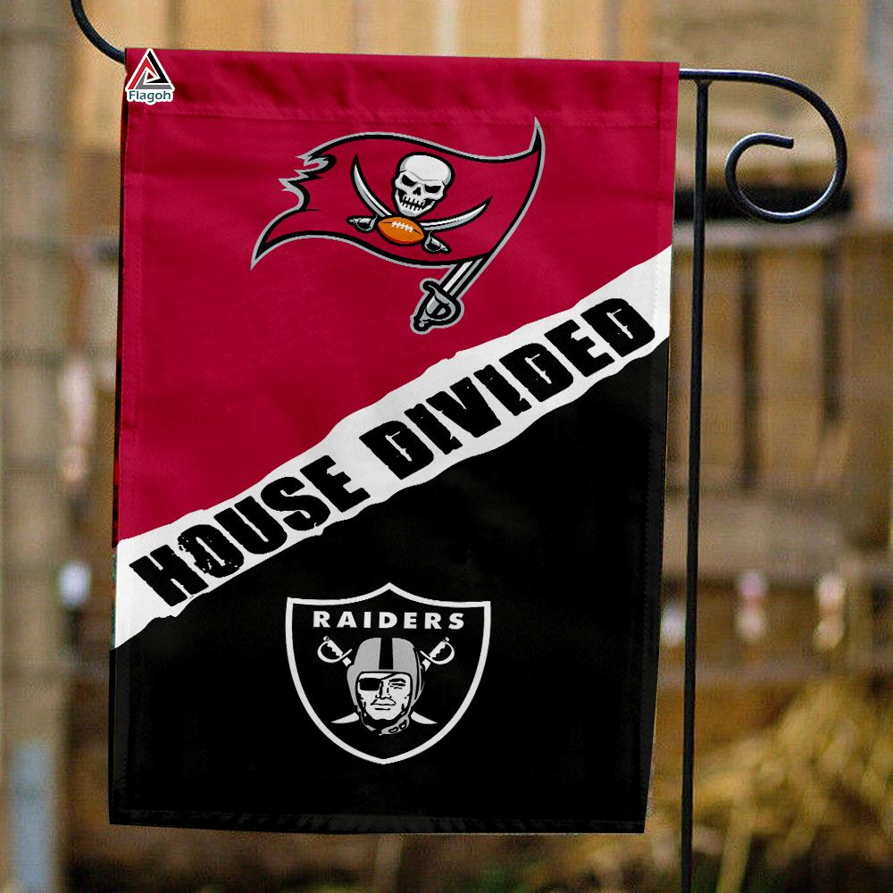 Buccaneers vs Raiders House Divided Flag Meaning: The Buccaneers vs Raiders House Divided Flag is a must-have for any NFL fan who wants to show their team pride while also representing their household's divided loyalties. This flag features the logos of both the Tampa Bay Buccaneers and the Las Vegas Raiders, making it the perfect addition to any home where fans of these two teams reside. - Buy it: Buccaneers vs Raiders House Divided Flag, NFL House Divided Flag