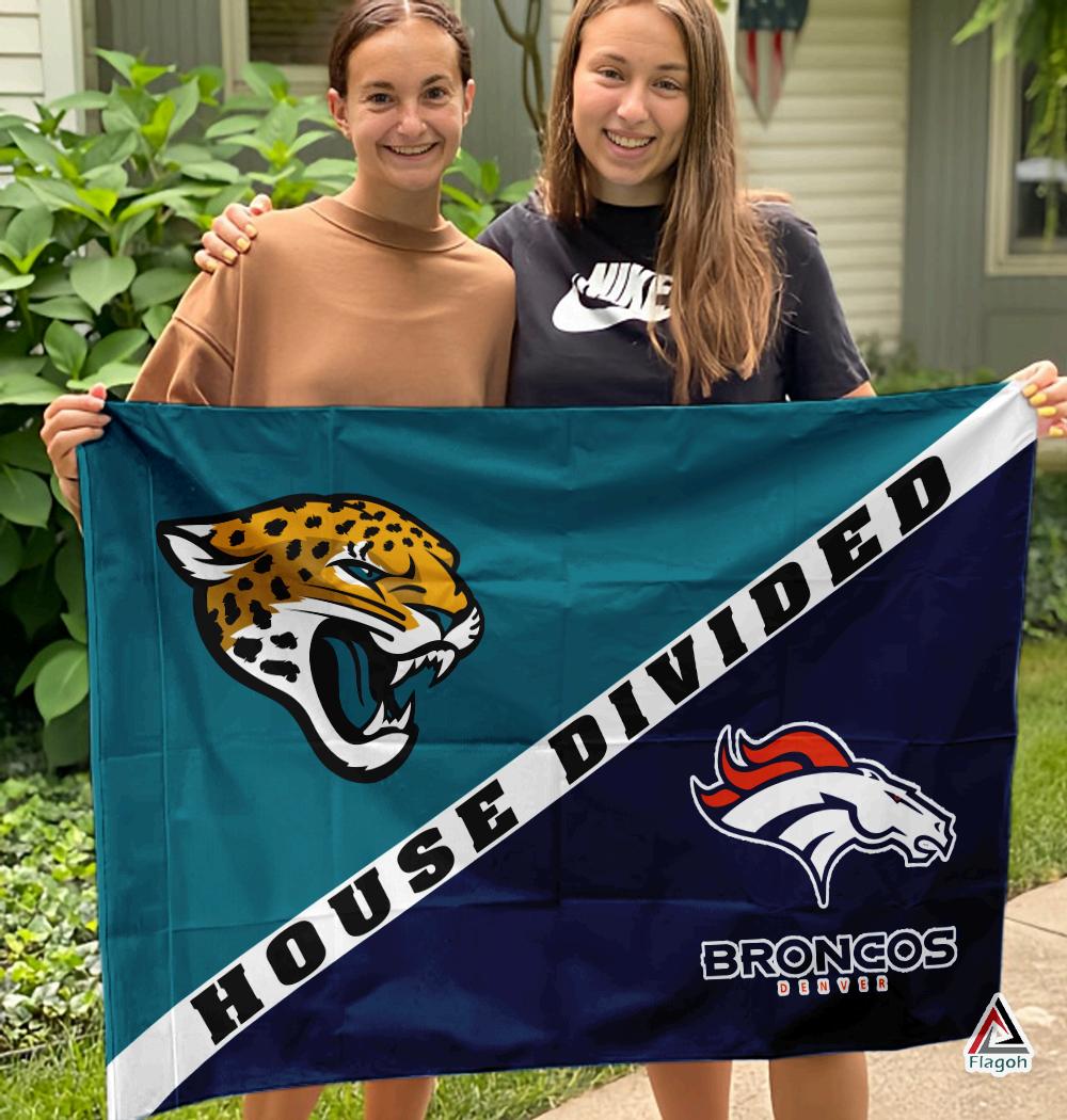Jaguars vs Broncos House Divided Flag, NFL House Divided Flag: Show Off Your Team Spirit in Style!