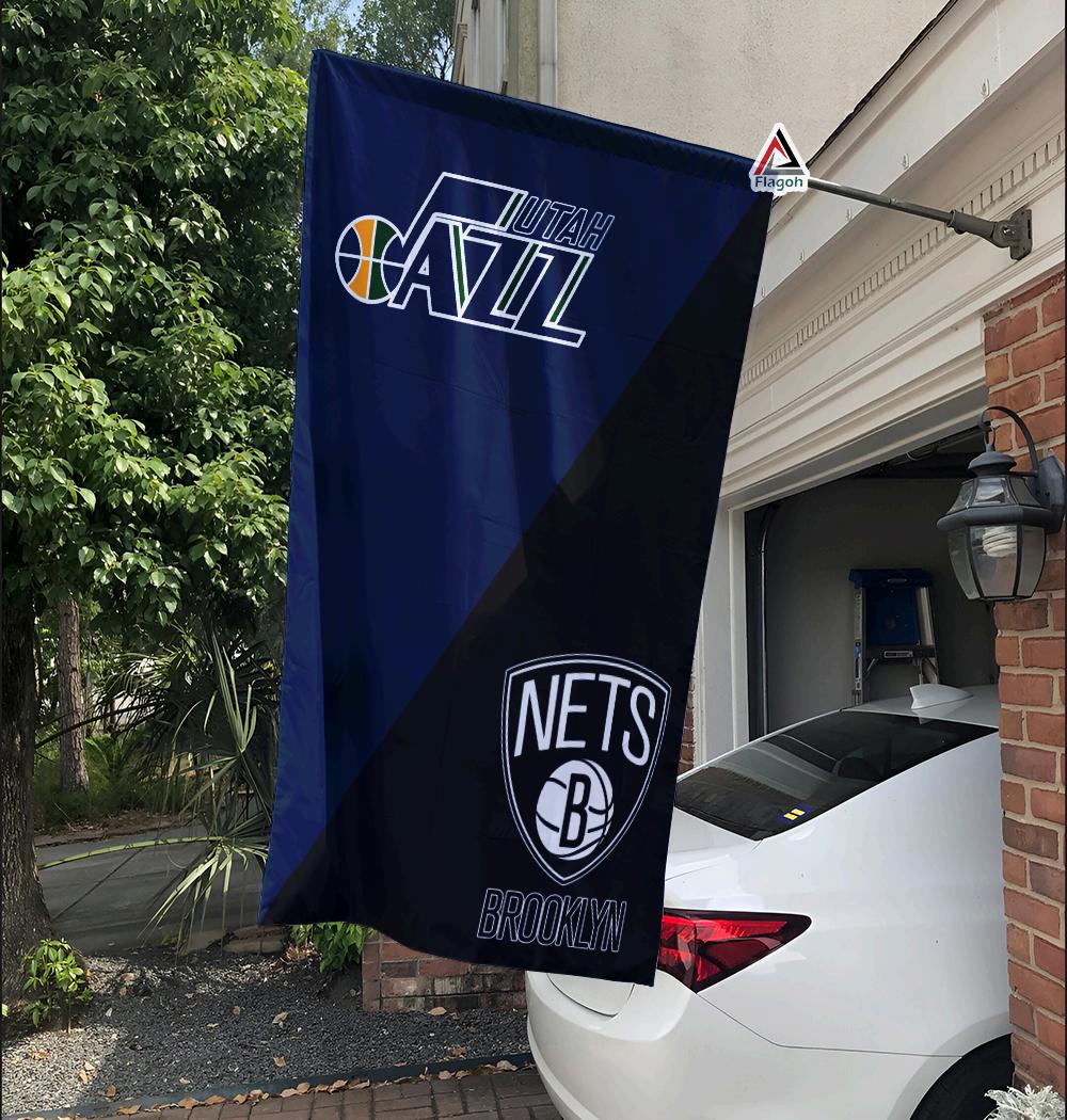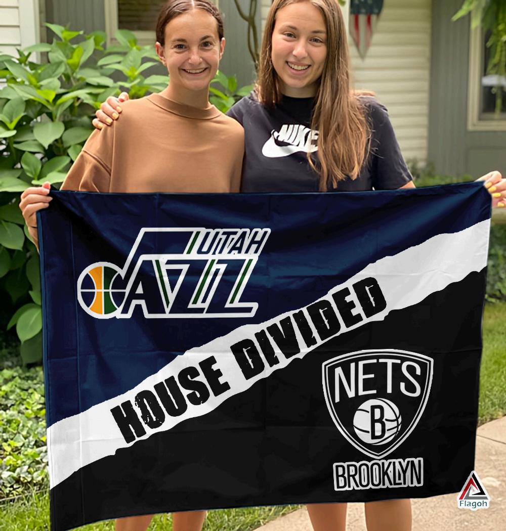 Jazz vs Nets House Divided Flag, NBA House Divided Flag: Perfect Rivalry Decor for Every Fan
