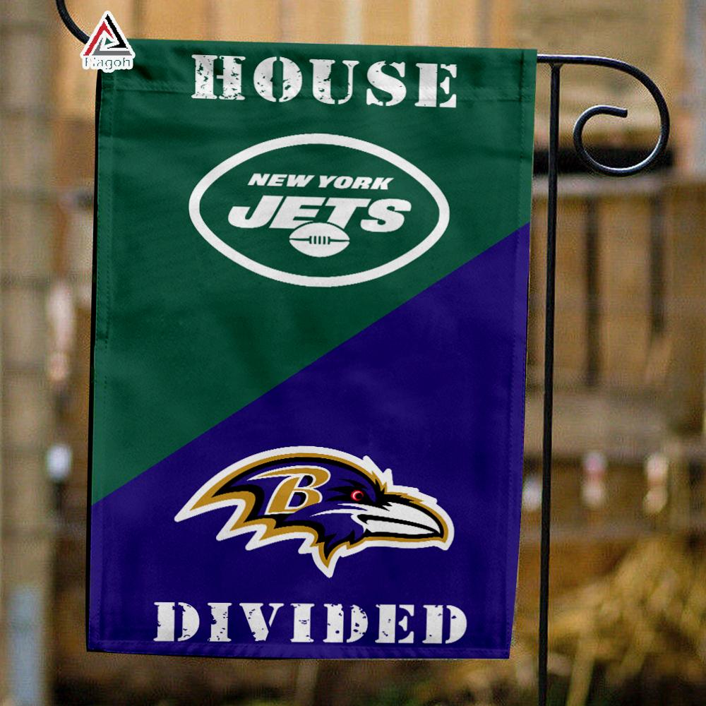 Order now to elevate your NFL fan experience and enjoy the unbeatable combination of practicality, durability, and thrilling team spirit with the Jets vs Ravens House Divided Flag.