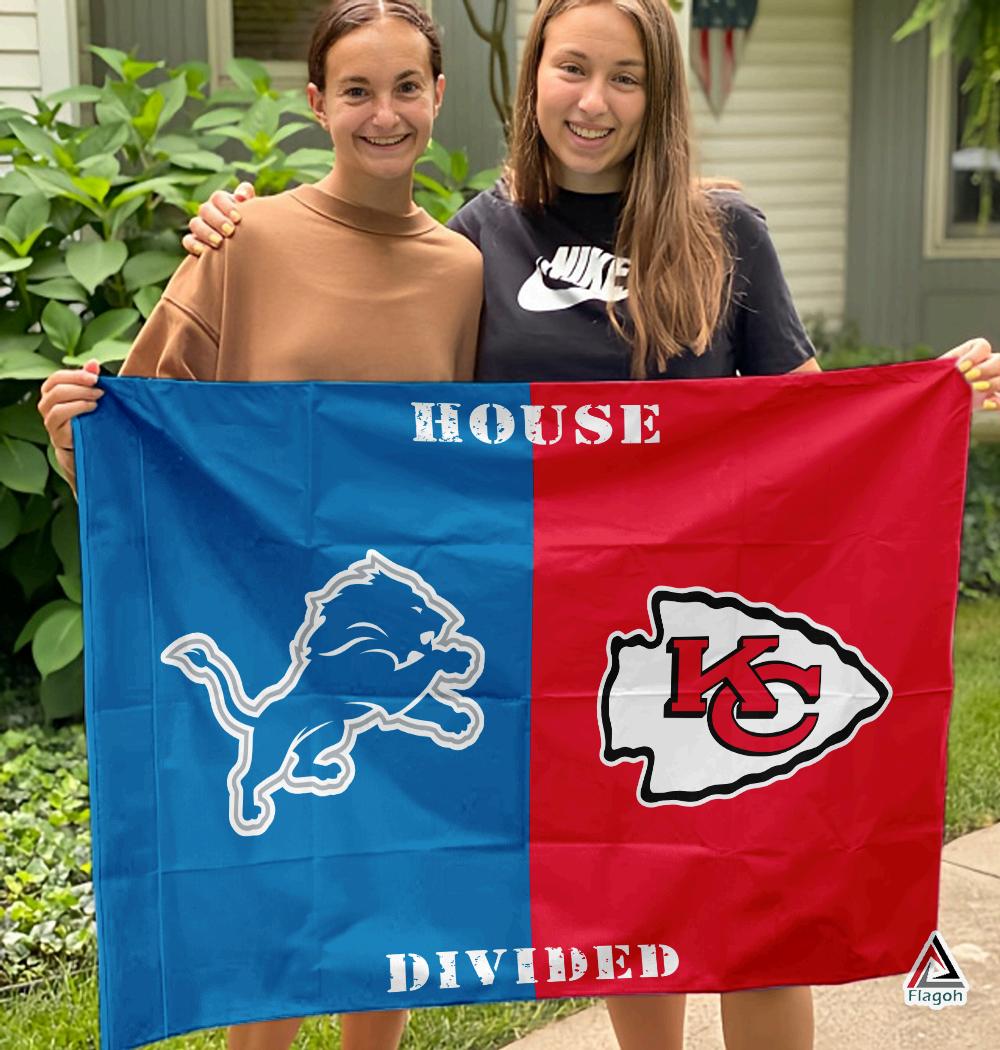 Lions vs Chiefs House Divided Flag, NFL House Divided Flag