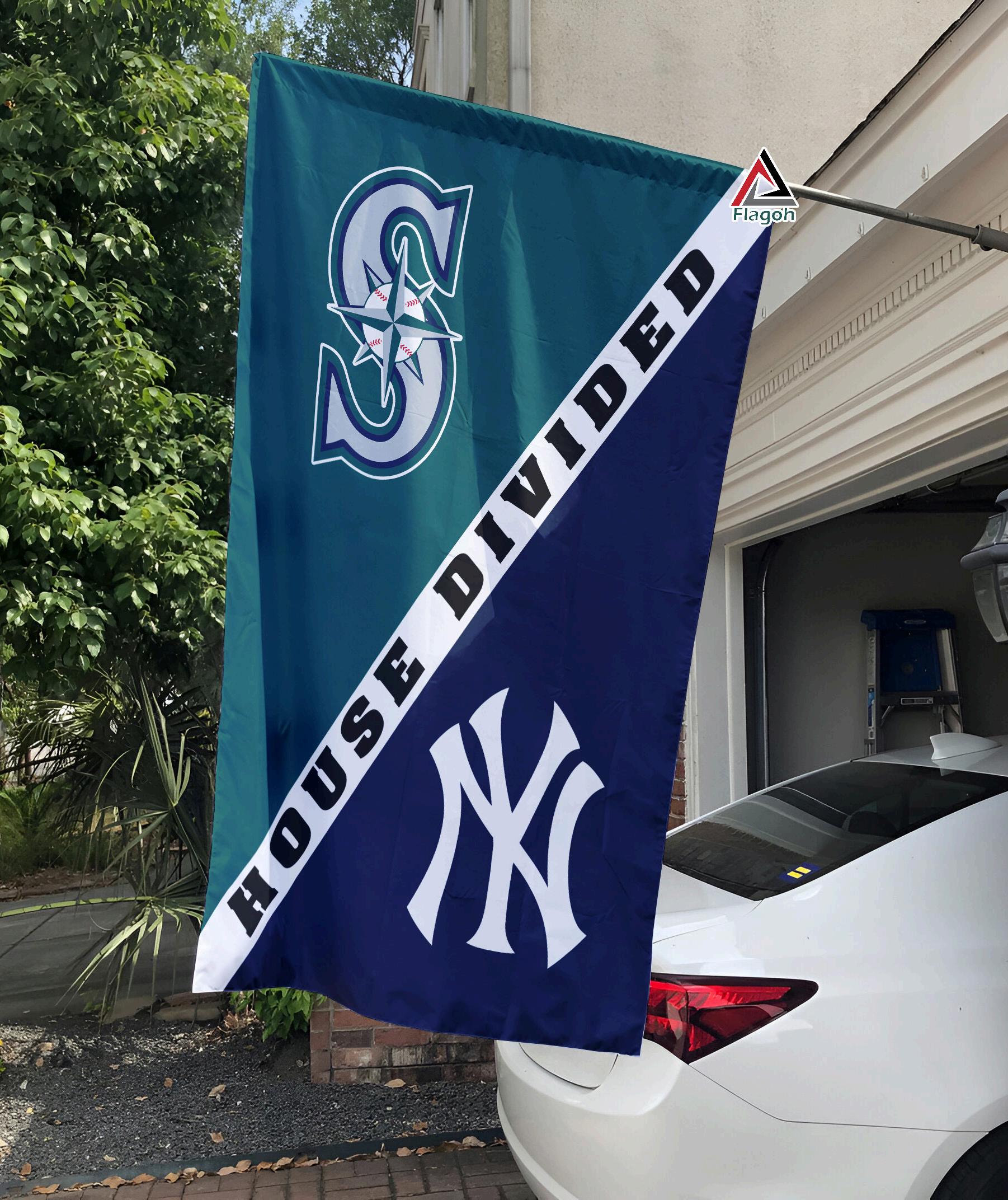Mariners vs Yankees House Divided Flag, MLB House Divided Flag