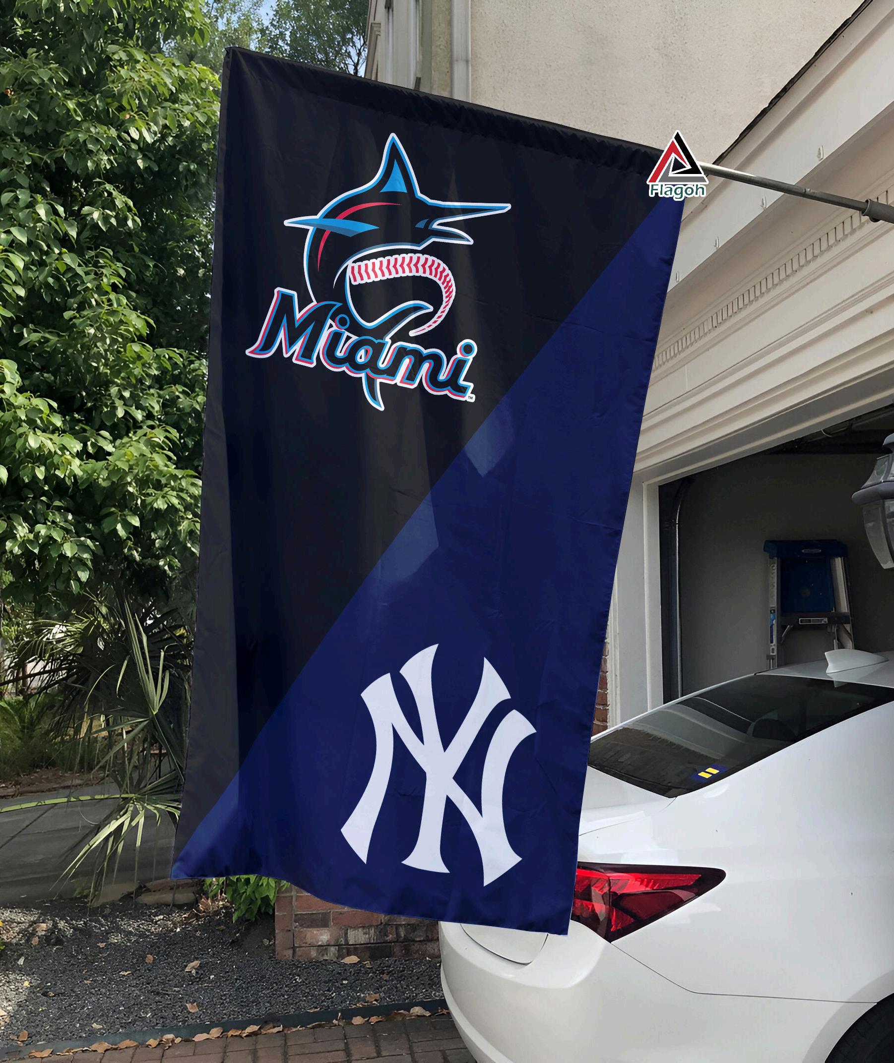 Marlins vs Yankees House Divided Flag, MLB House Divided Flag