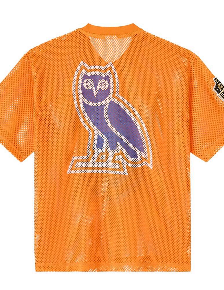 Elevate your sports apparel collection with the New York Knicks OVO x NBA Mesh Football Fashion Jersey in striking orange is limited replica fan edition merges iconic basketball culture with high-end fashion, cra ed for fans who demand both style and comfort