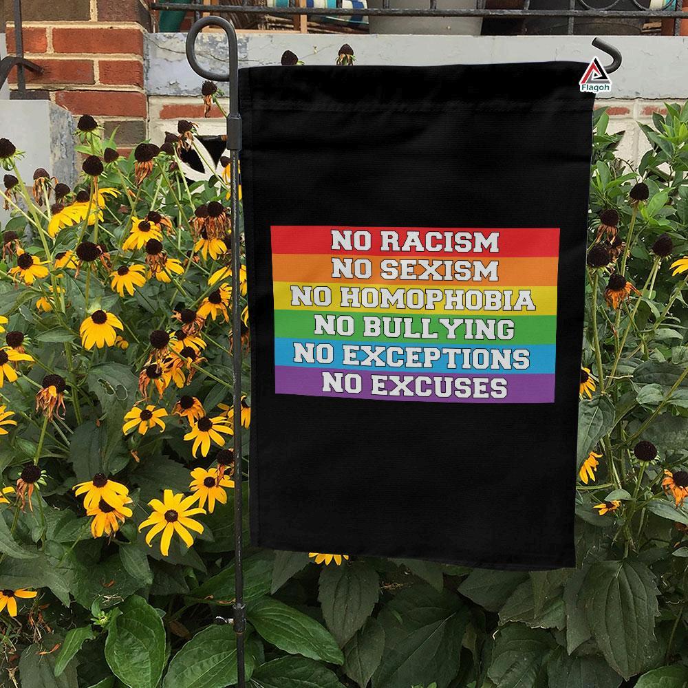 Celebrate pride and promote equality with the powerful No Racism No Sexism Flag, a vibrant emblem that stands tall as a symbol of inclusivity and love. This beautifully designed Progress Pride Flag combines messages against racism and sexism while proudly showcasing the colors of the LGBT community, making it a must-have for anyone wanting to express solidarity and support through their decor or gifts.