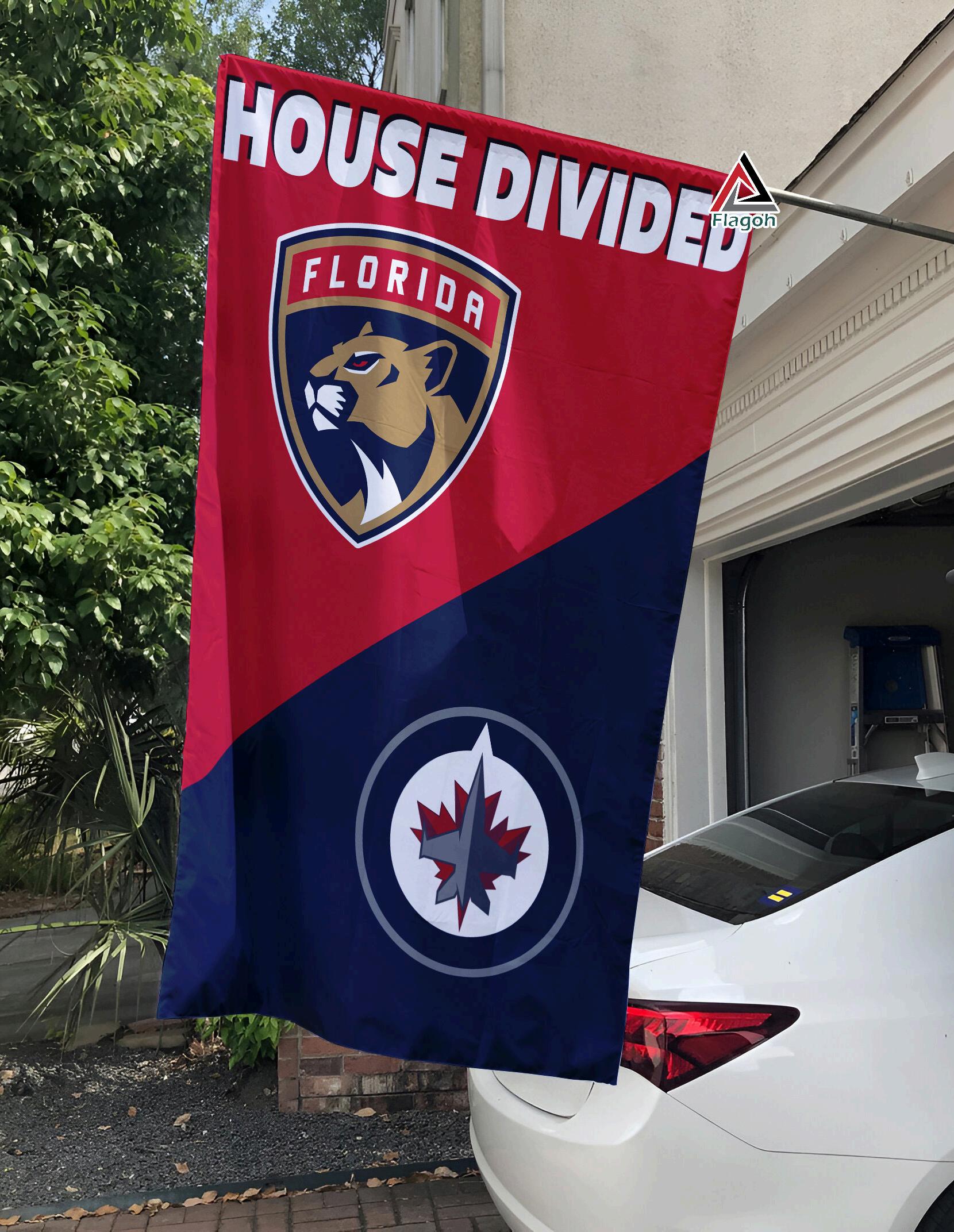 Show your team spirit and embrace the friendly rivalry with the Panthers vs Jets House Divided Flag, NHL House Divided Flag Whether hosting a game day party or decorating your space, this ag celebrates both fanbases in style