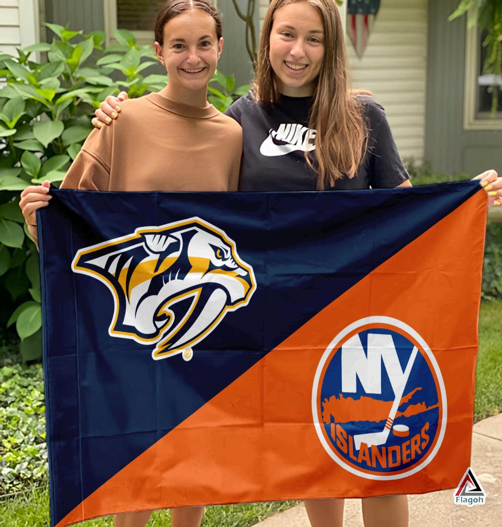 Imagine having this eye-catching flag hanging in your shared living space it's perfect for families, roommates, or couples who support opposing NHL teams but want to celebrate their passion together Moreover, this flag is an excellent conversation starter during game days, parties, or social gatherings, bringing fellow Predators and Islanders fans together under one roof.