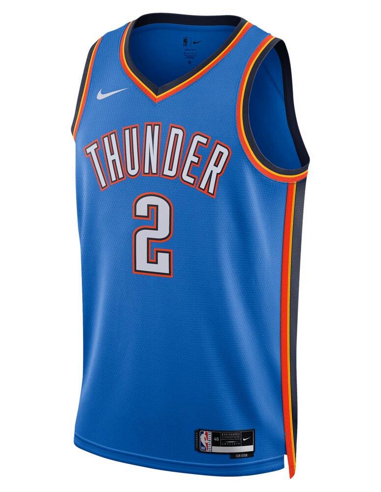 Elevate your fan apparel game with a jersey that speaks volumes about your loyalty and passion. Support one of the NBA’s most exciting talents and the Oklahoma City under with this iconic blue swingman jersey.
