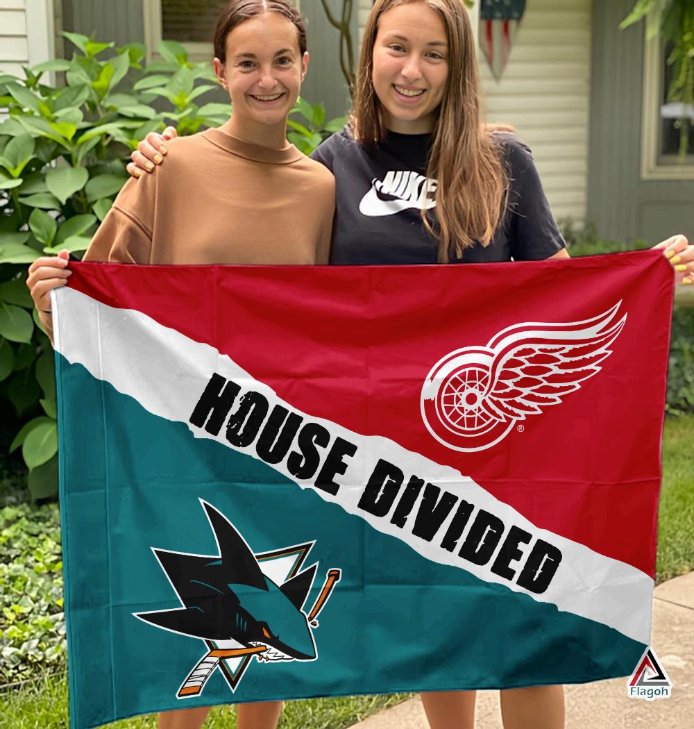 Sharks vs Red Wings House Divided Flag, NHL House Divided Flag