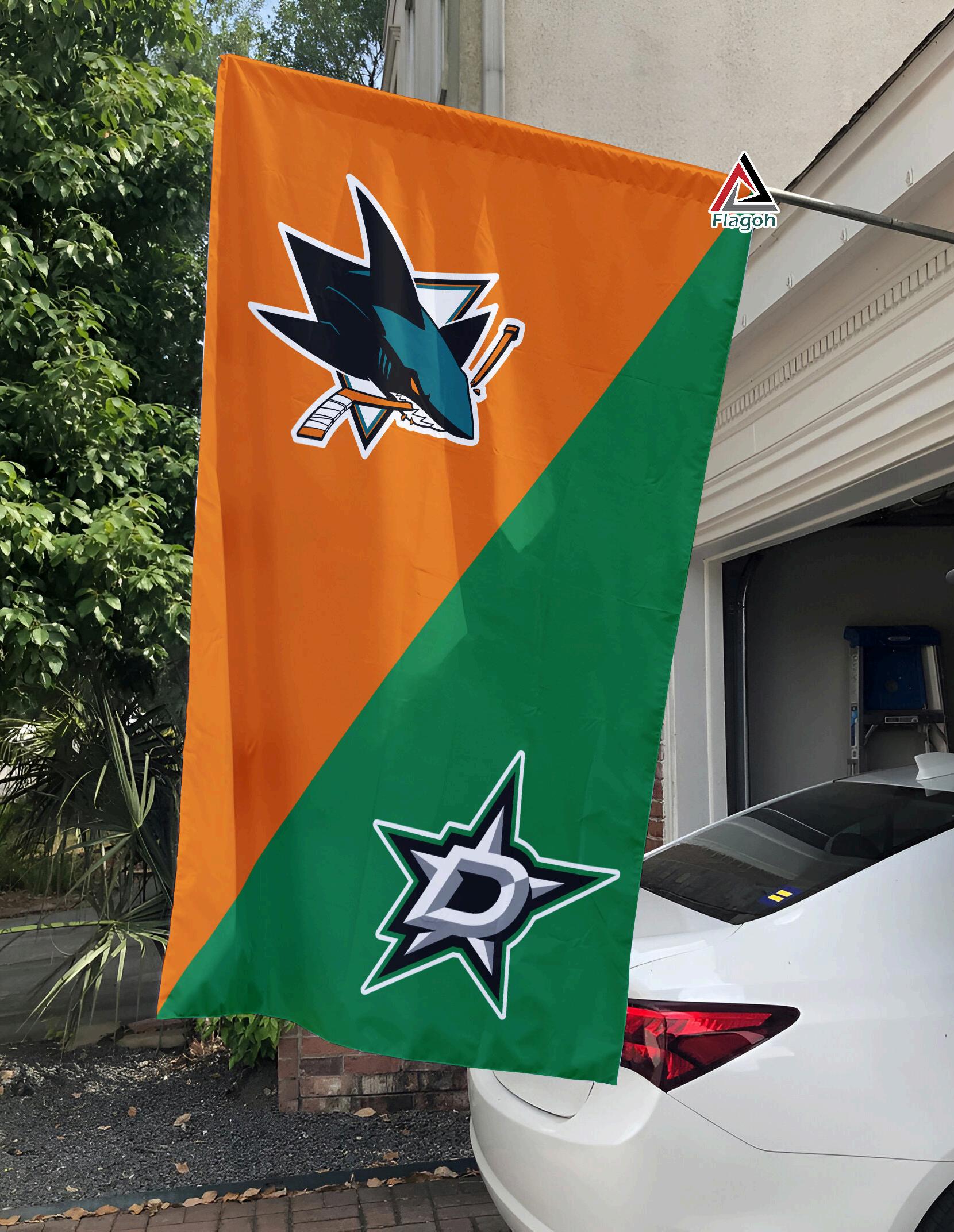Showcase your NHL pride with the must-have Sharks vs Stars House Divided Flag, NHL House Divided Flag. Whether you're a devoted San Jose Sharks or Dallas Stars fan, this striking flag lets you honor both teams in style