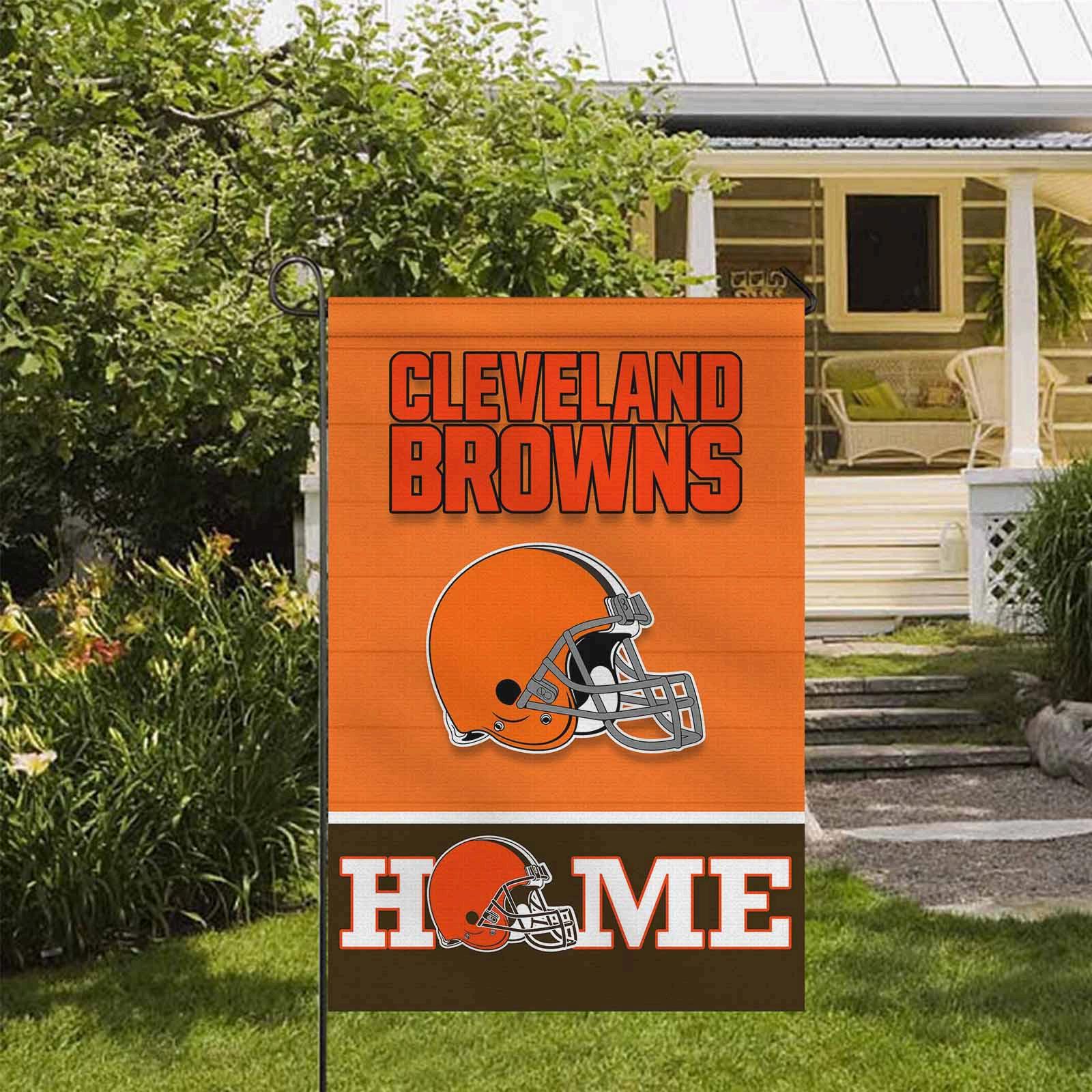 Cleveland Browns Football Flag, Brownie the Elf Mascot Personalized Football Fan Welcome Flags, Custom Family Name NFL Decor