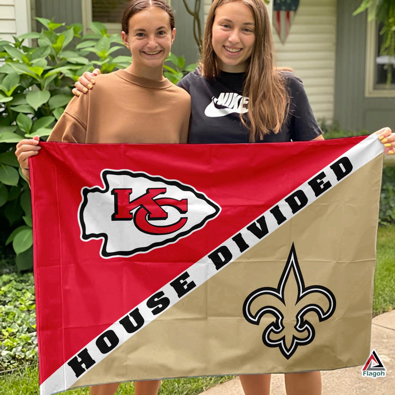 The Chiefs vs Saints House Divided Flag offers fans a unique opportunity to express their passion and respect for the fierce rivalry between these teams. Crafted with high-quality materials, the flag boasts vivid colors and a bold design that stands out in any setting. Not only does it celebrate your fandom, but it also adds a spirited decorative touch to your lawn, porch, or man cave