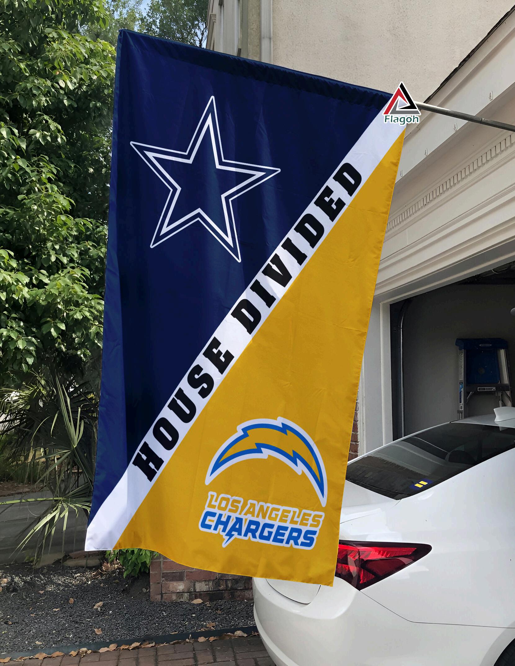Celebrate your dedication to both the Dallas Cowboys and the Los Angeles Chargers with the Cowboys vs Chargers House Divided Flag is uni ue NFL house divided ag is the perfect way to show your team spirit while embracing friendly rivalry under one roof