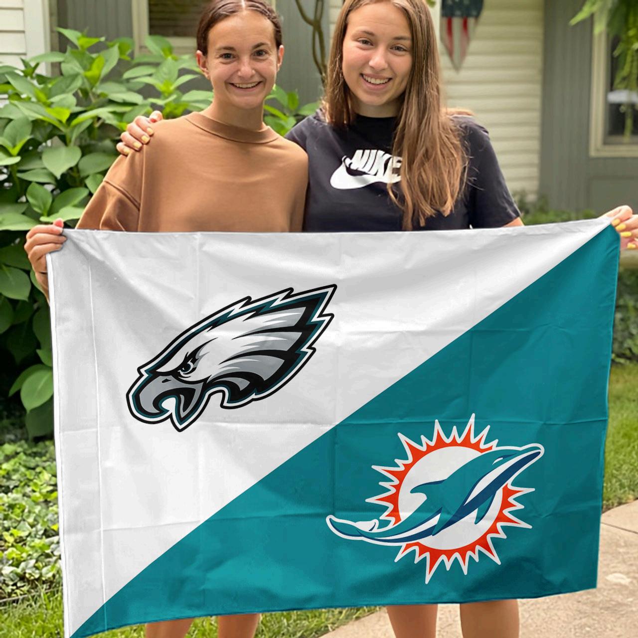 Show Your Team Spirit with the Eagles vs Dolphins House Divided Flag, NFL House Divided Flag