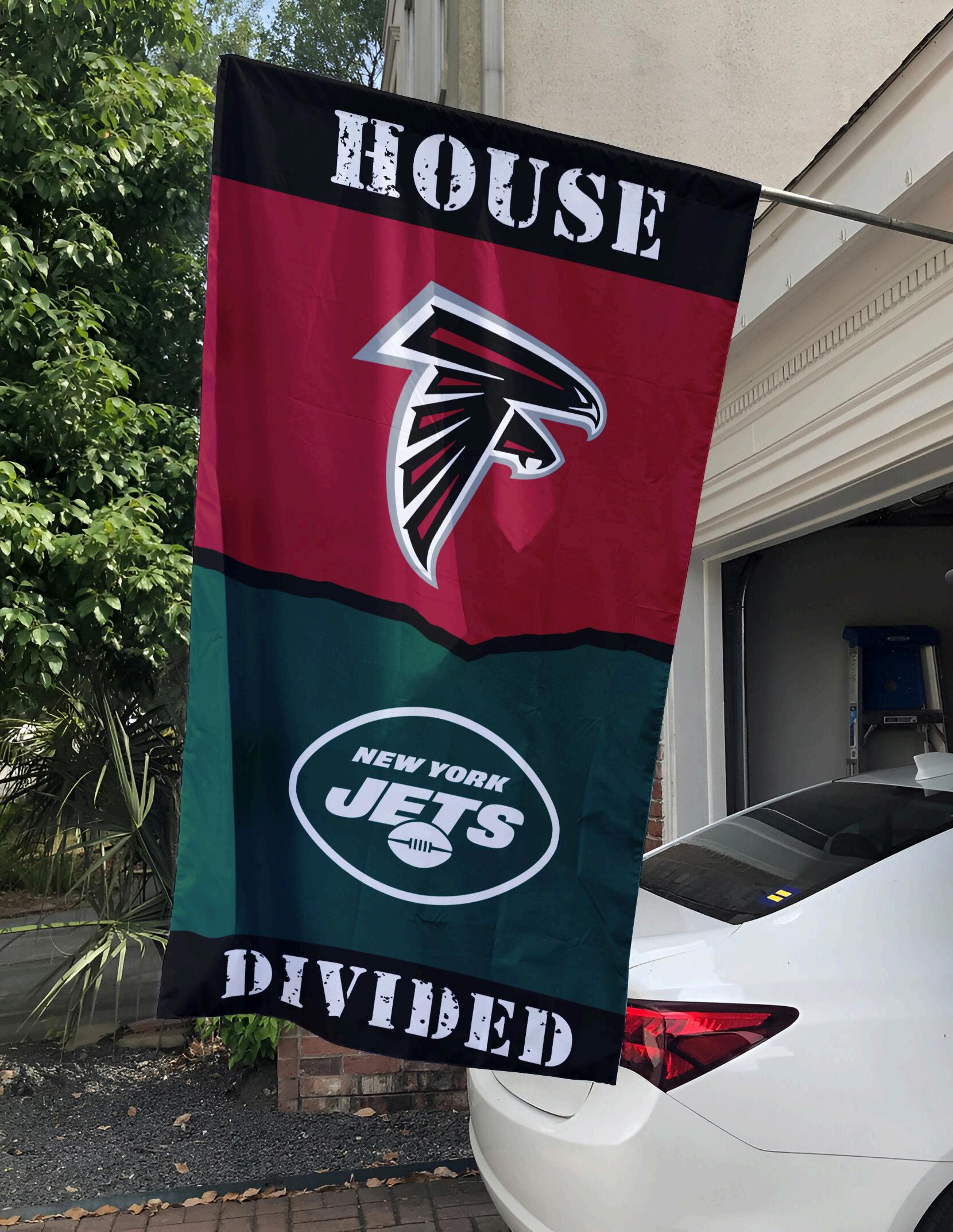 Show Your Team Spirit with the Falcons vs Jets House Divided Flag, NFL House Divided Flag