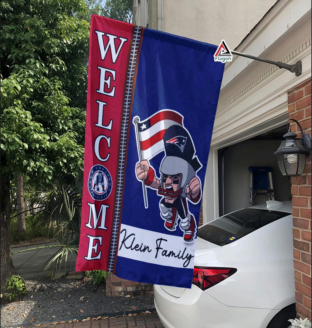 New England Patriots Football Flag, Pat Patriot Mascot Personalized Football Fan Welcome Flags, Custom Family Name NFL Decor