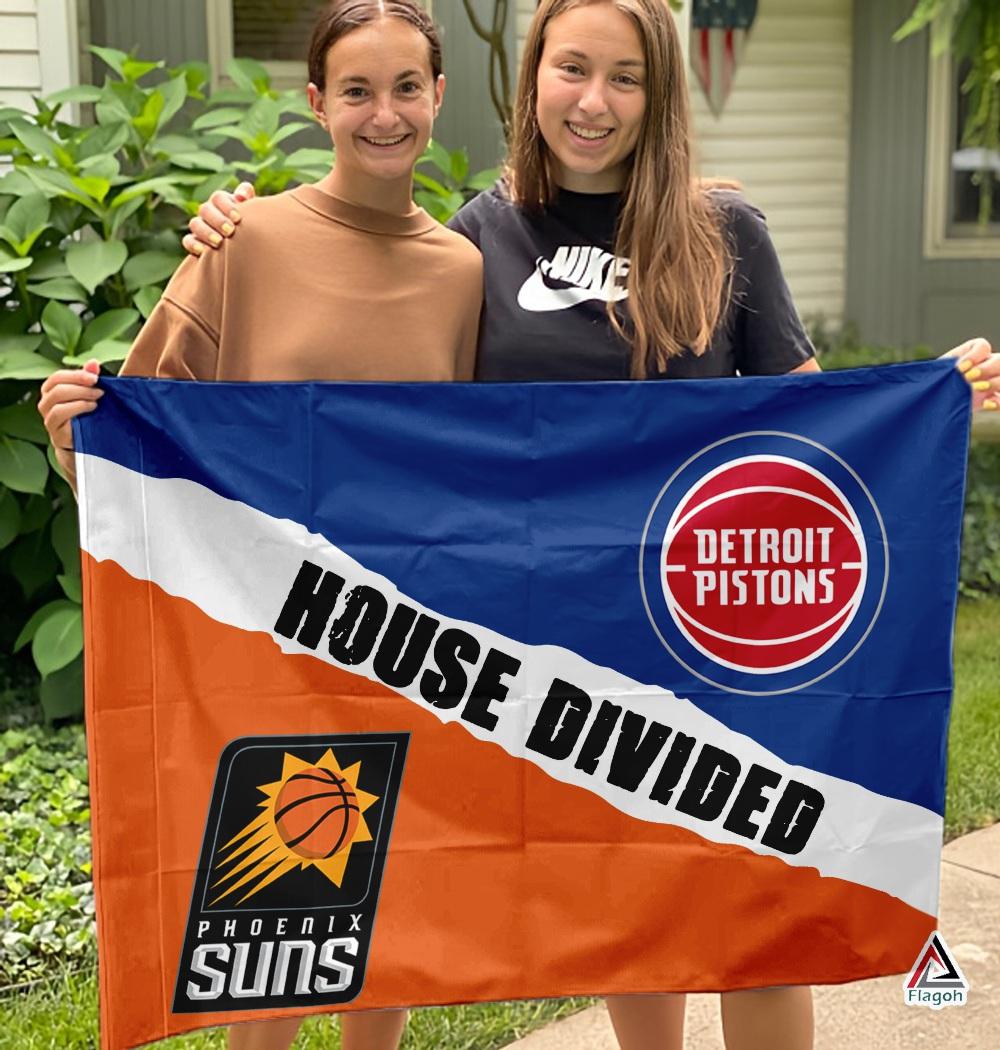ElevateyourgamedayspiritanduniteyourhomewithteampridebyaddingtheSunsvsPistonsHouseDividedFlagtoyour decortoday!